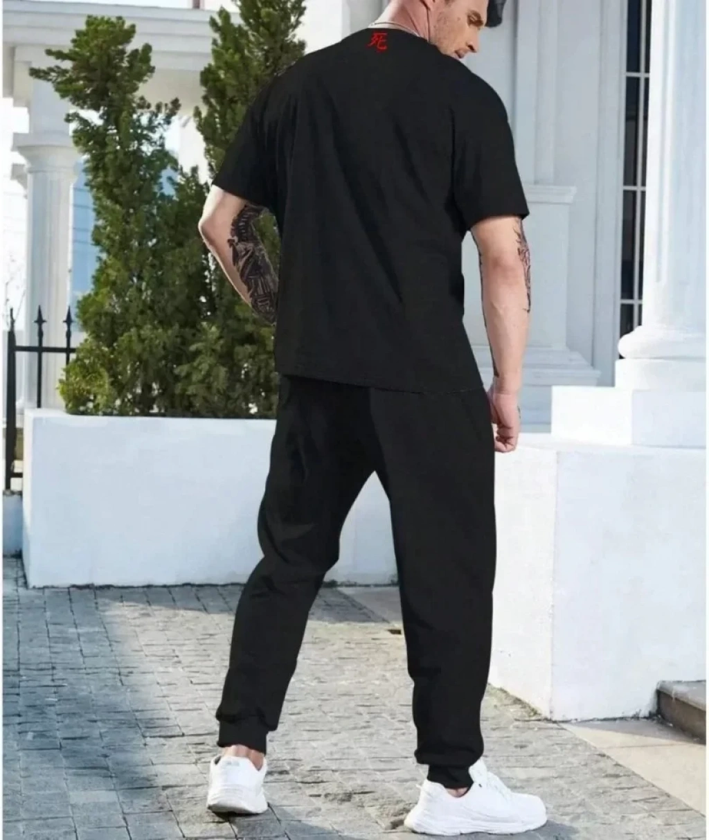 Unisex Baskılı Cepli Eşofman Takımı - Siyah
