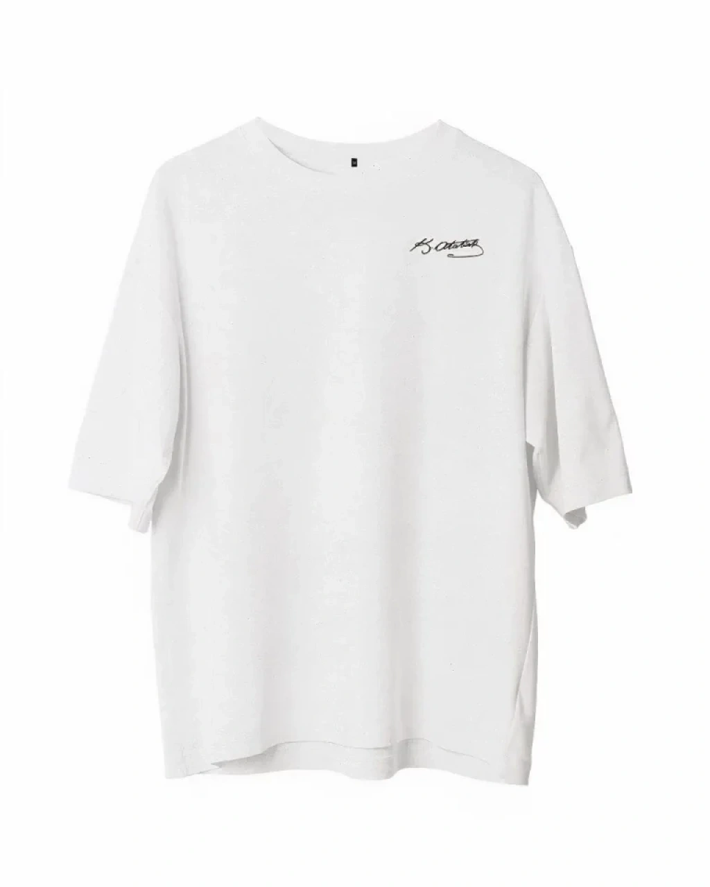 Unisex Bisiklet Yaka Baskılı Oversize Thirt Beyaz