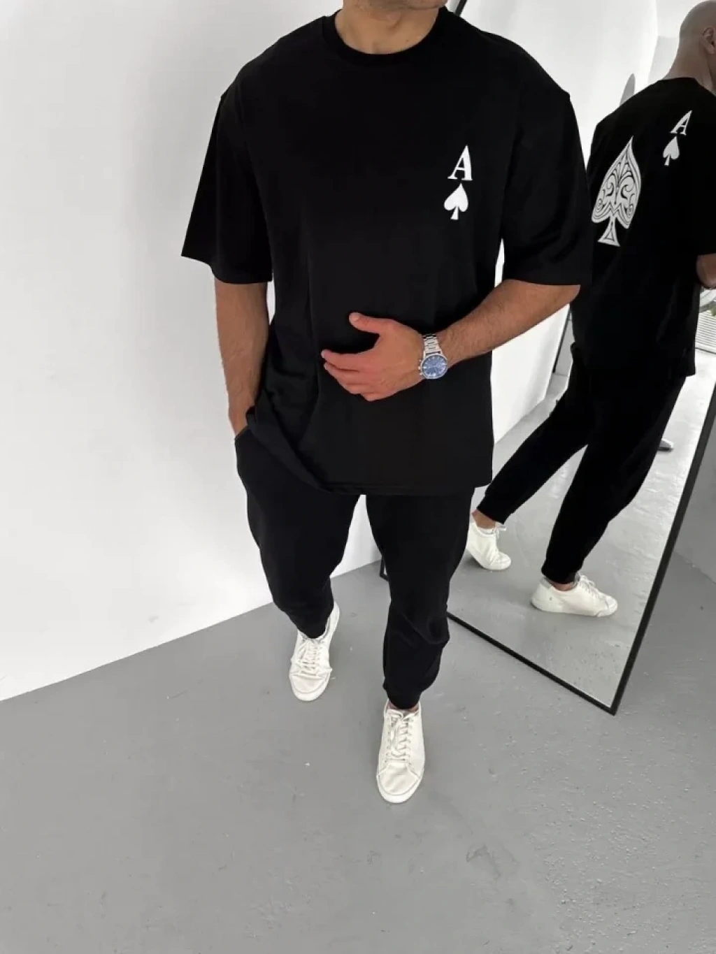 Erkek Asit Yıkama Bisiklet Yaka Kısa Kollu Oversize Thirt Tişört iyah