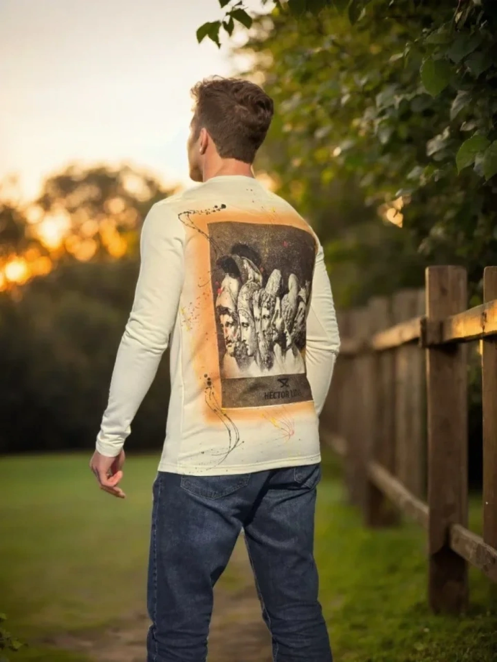 Unisex Bisiklet Yaka Uzun Kollu Thirt Beyaz