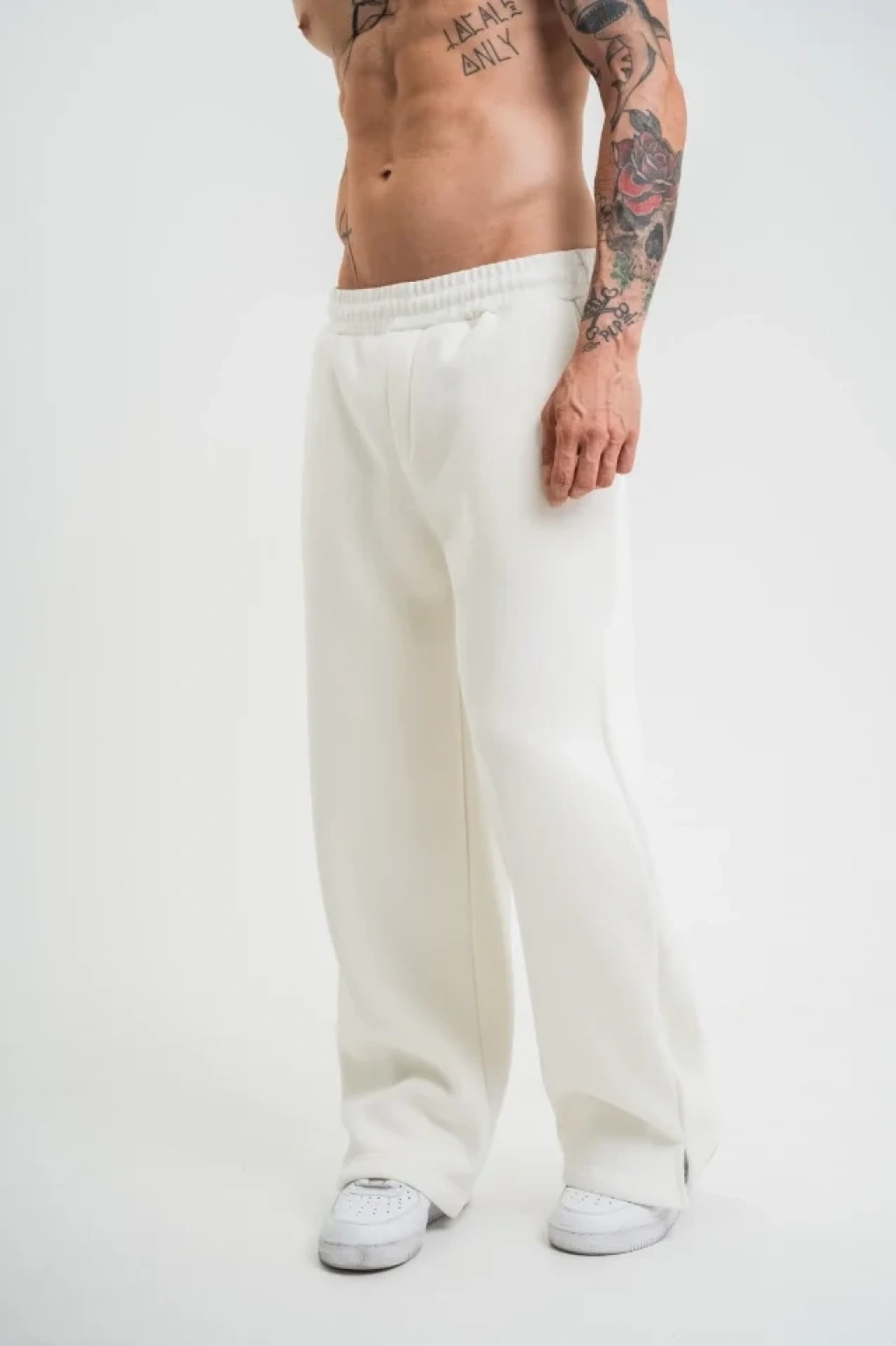 Unisex Boru Paça Baggy Eşofman Pantolon Beyaz