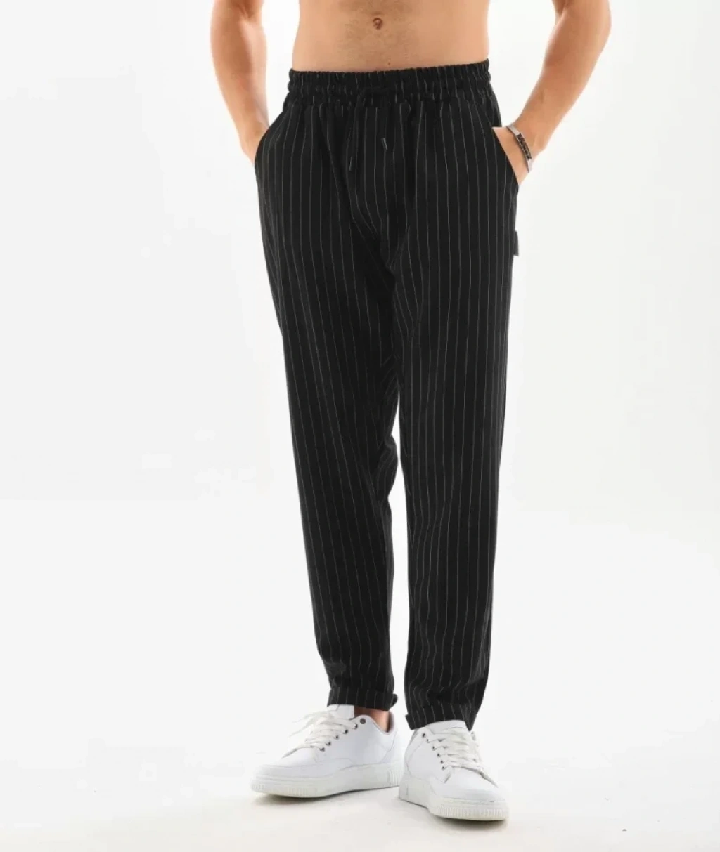 Erkek Yandan Şeritli Boru Paça Eşofman Altı 3 Iplik Pamuklu Eşofman iyah