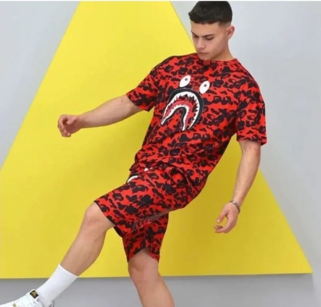 Unisex Dijital Baskılı Şortlu Takım - Kırmızı