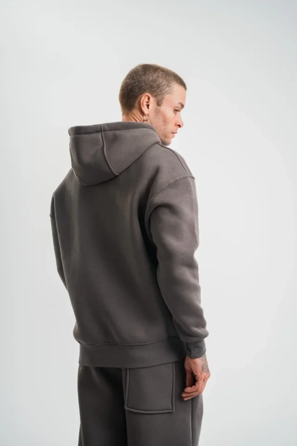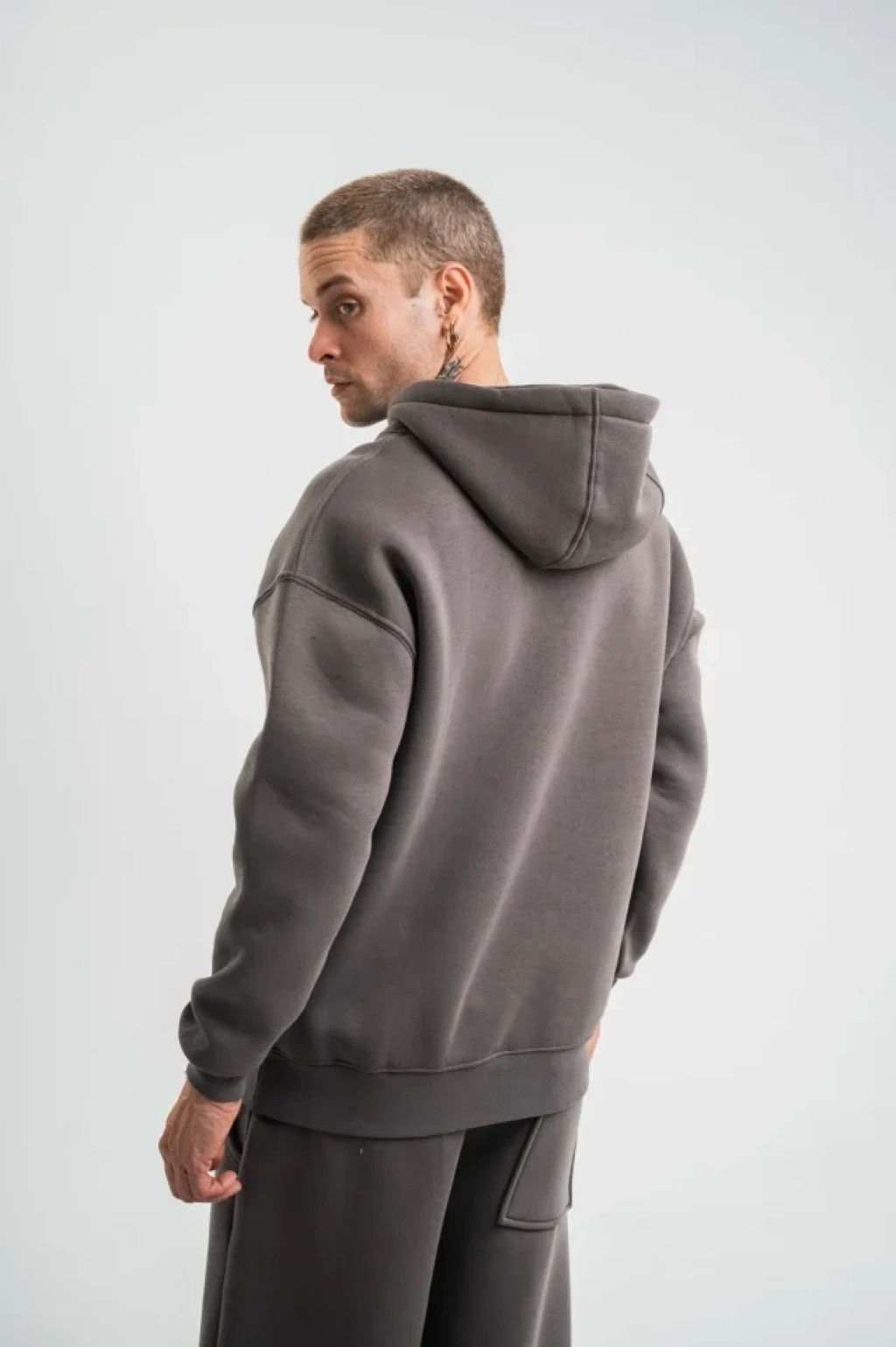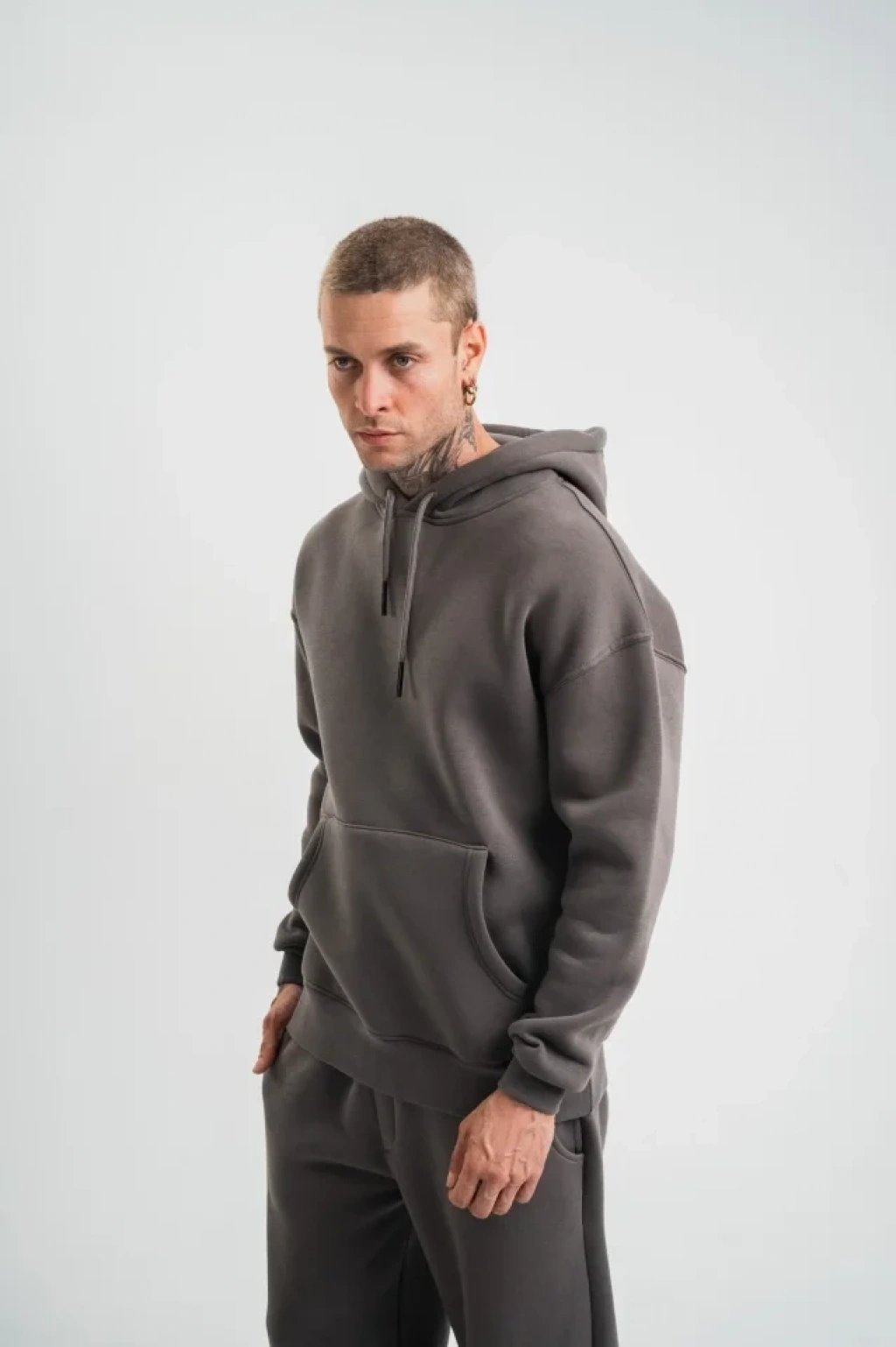 Unisex Double Oversize Kapşonlu Basic weathirt Füme