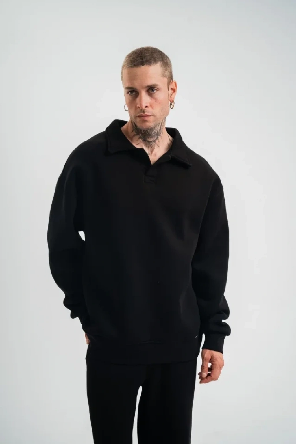 Unisex Double Oversize Patlı Yaka weathirt iyah