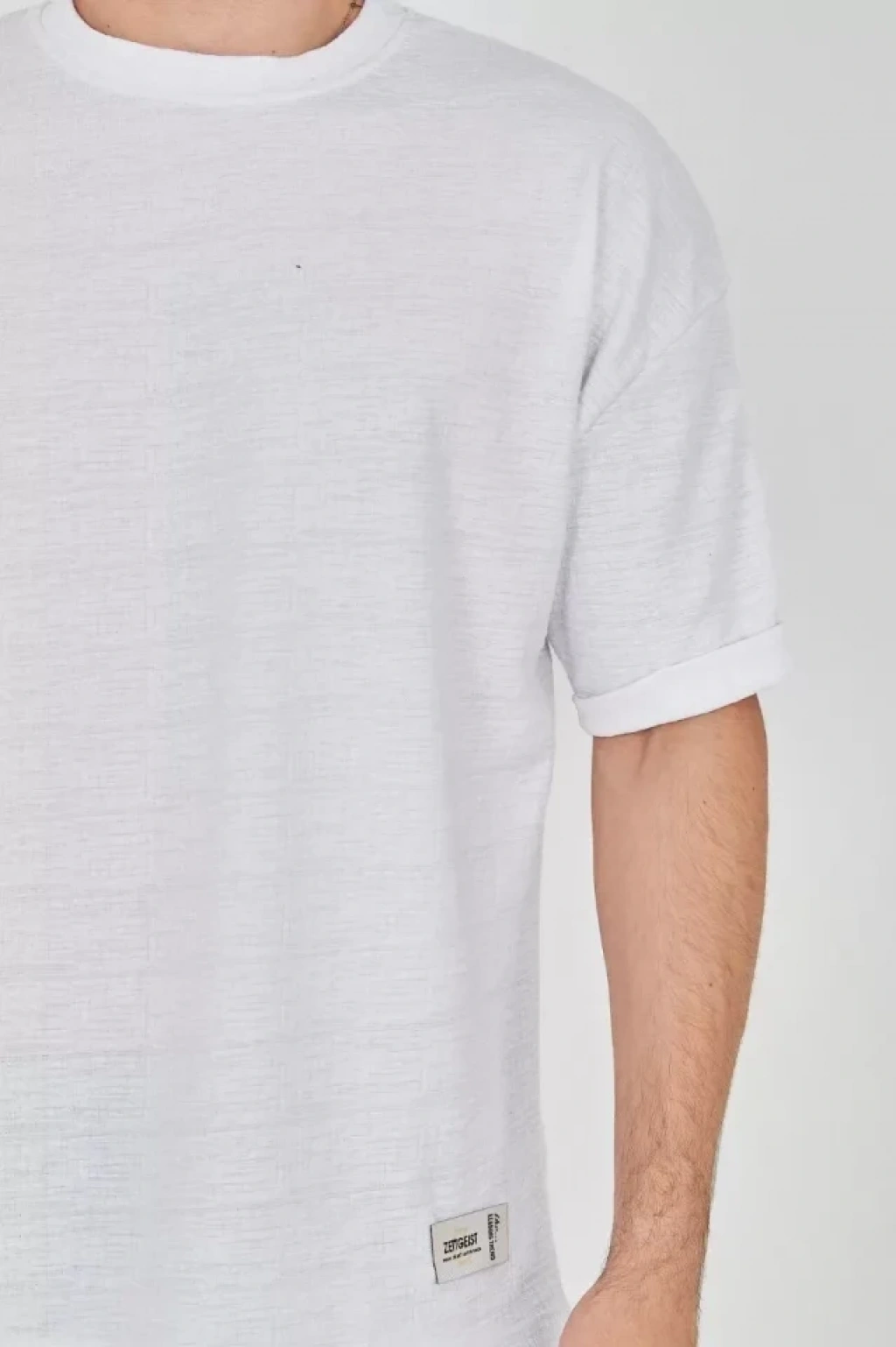 Unisex Jakar Kumaş Rahat Kol Thirt Beyaz