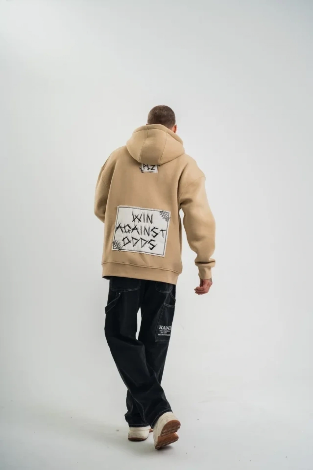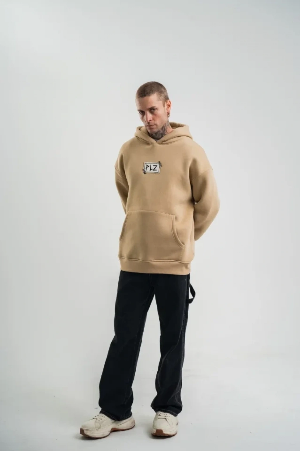 Unisex Kapşonlu Uzun Kol Patchli Nakışlı SweatShirt - Bej