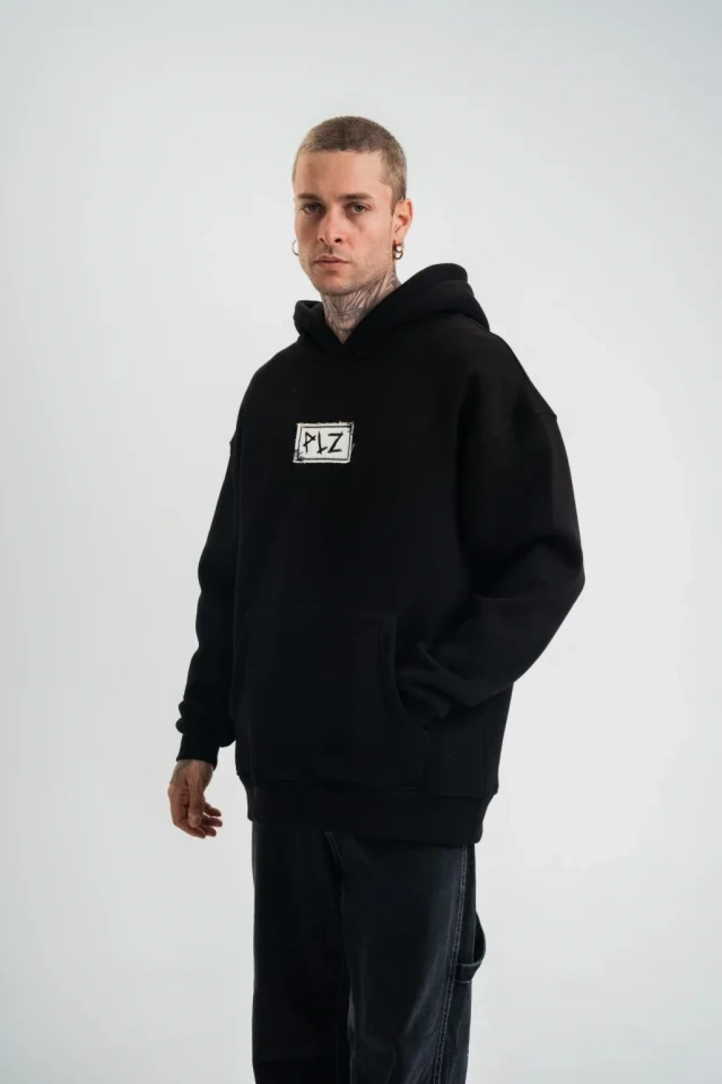 Unisex Kapşonlu Uzun Kol Patchli Nakışlı weathirt iyah