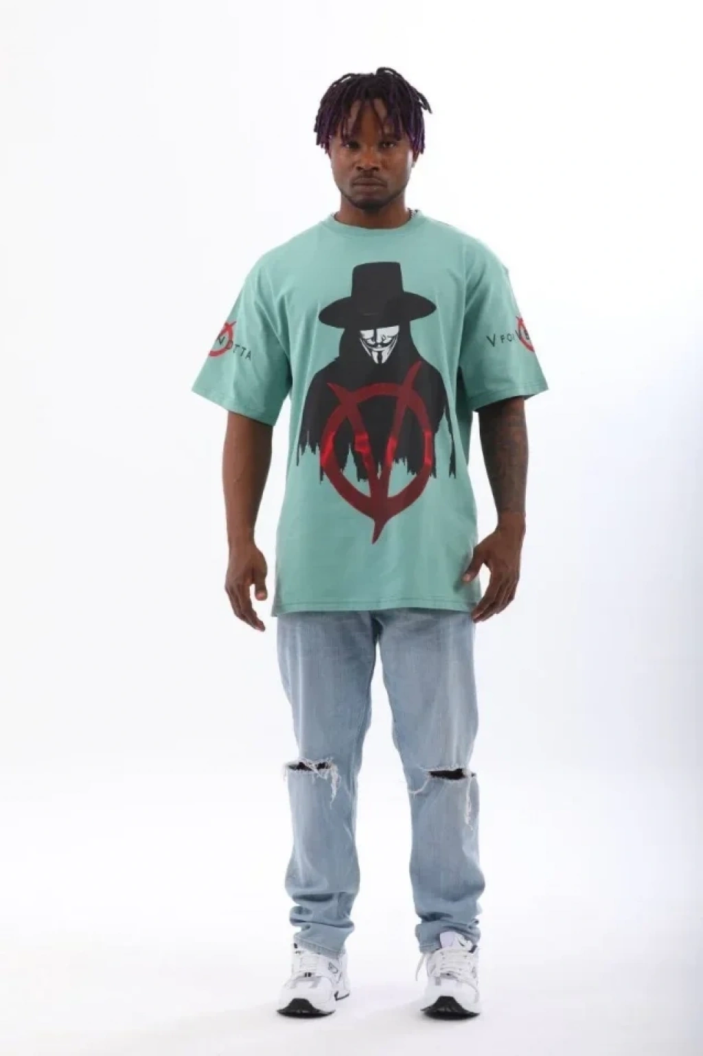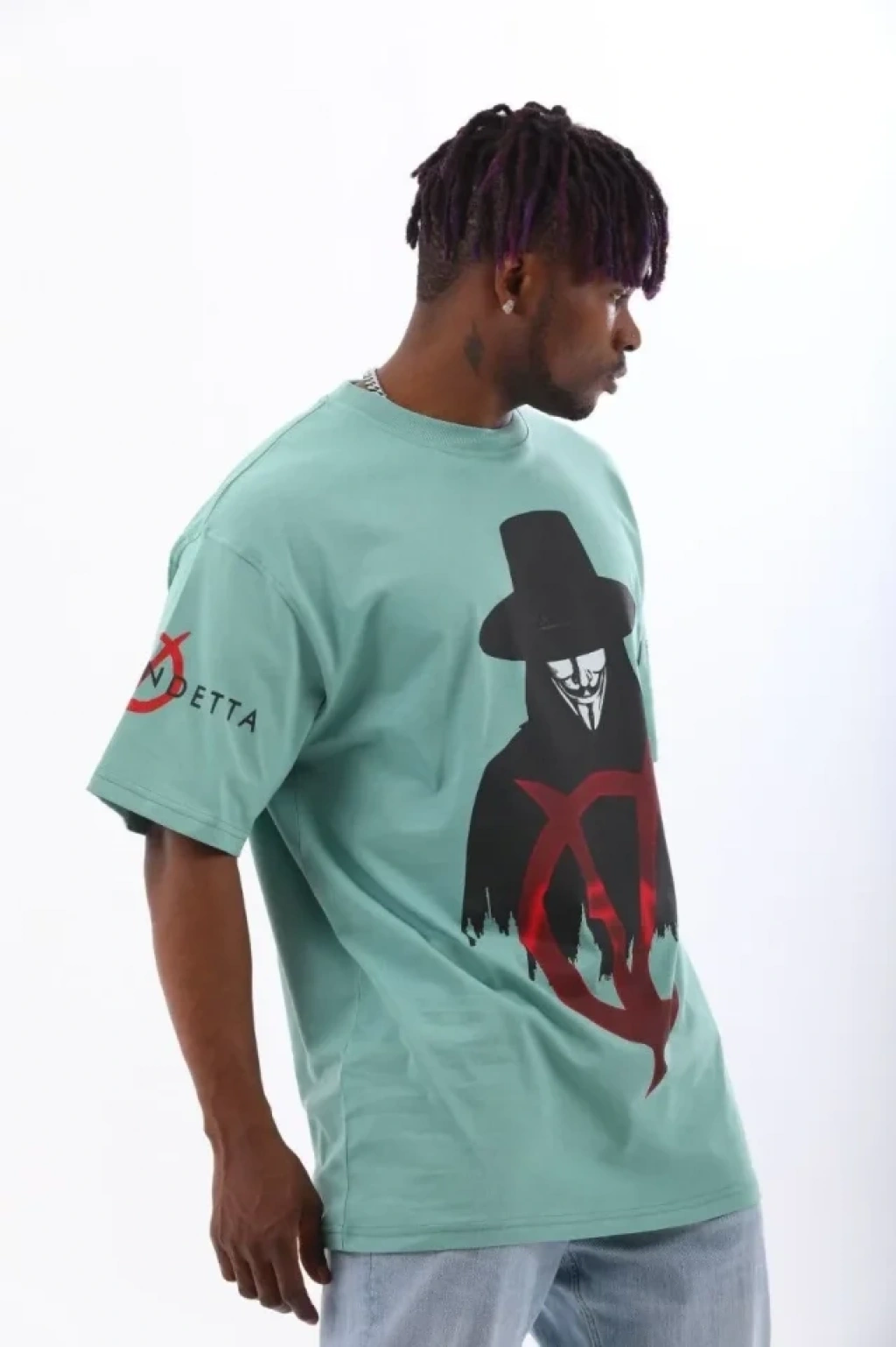 Unisex Oversize Baskılı Bisiklet Yaka T-Shirt - Mint Yeşili