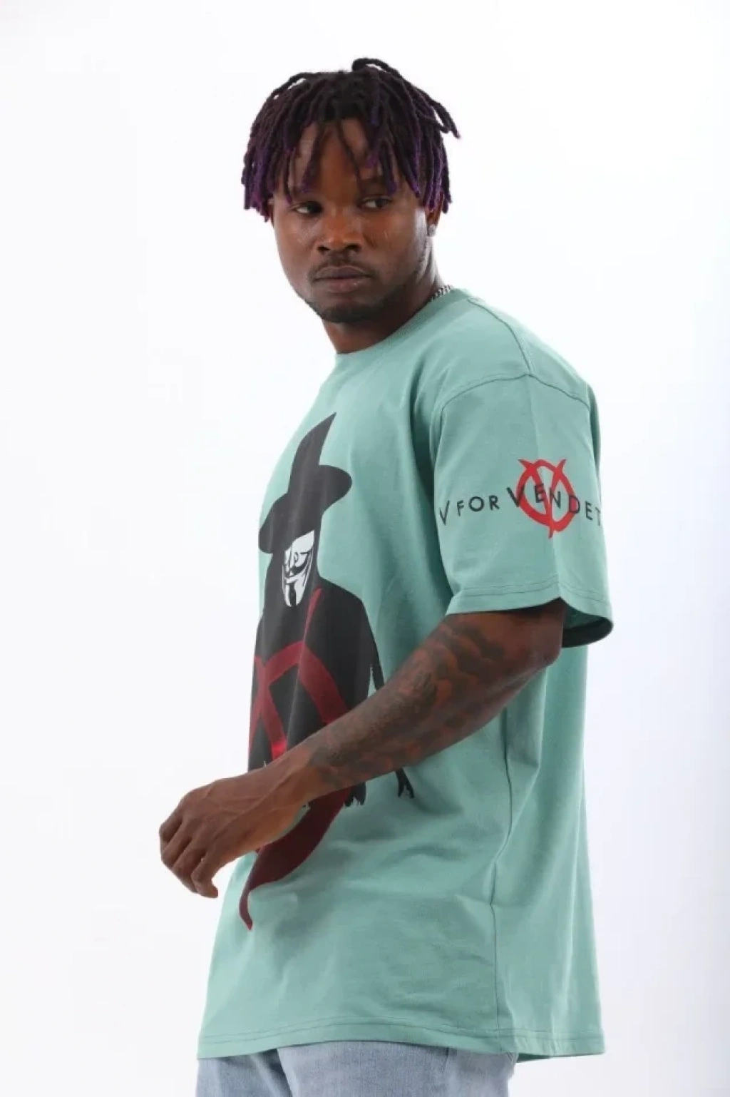 Erkek Asit Yıkama Bisiklet Yaka Kısa Kollu Oversize Thirt Tişört Yeşil
