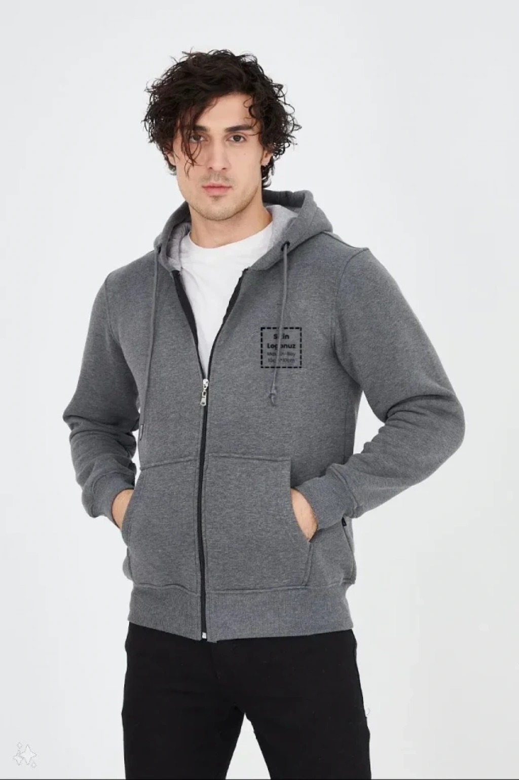 Unisex Tam Fermuarlı Kapşonlu Özel Tasarım weathirt Antrasit
