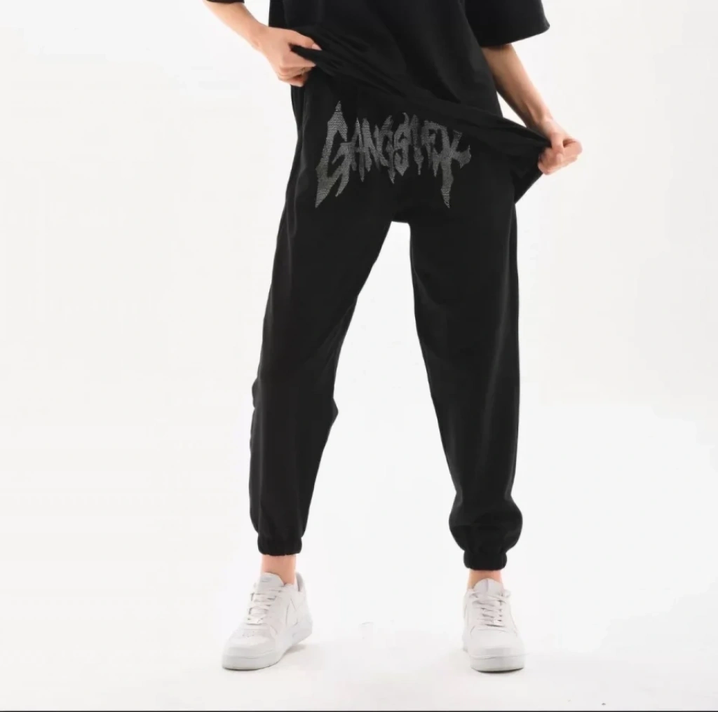 Unisex Taş Detaylı Eşofman Altı - Siyah