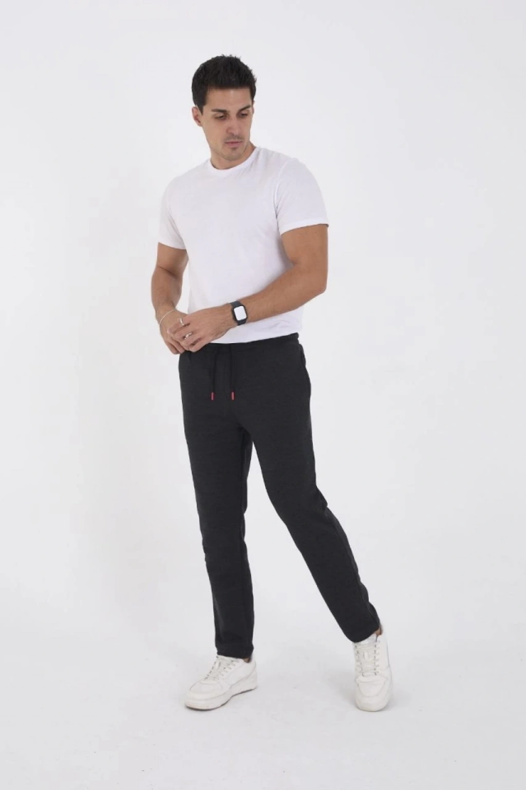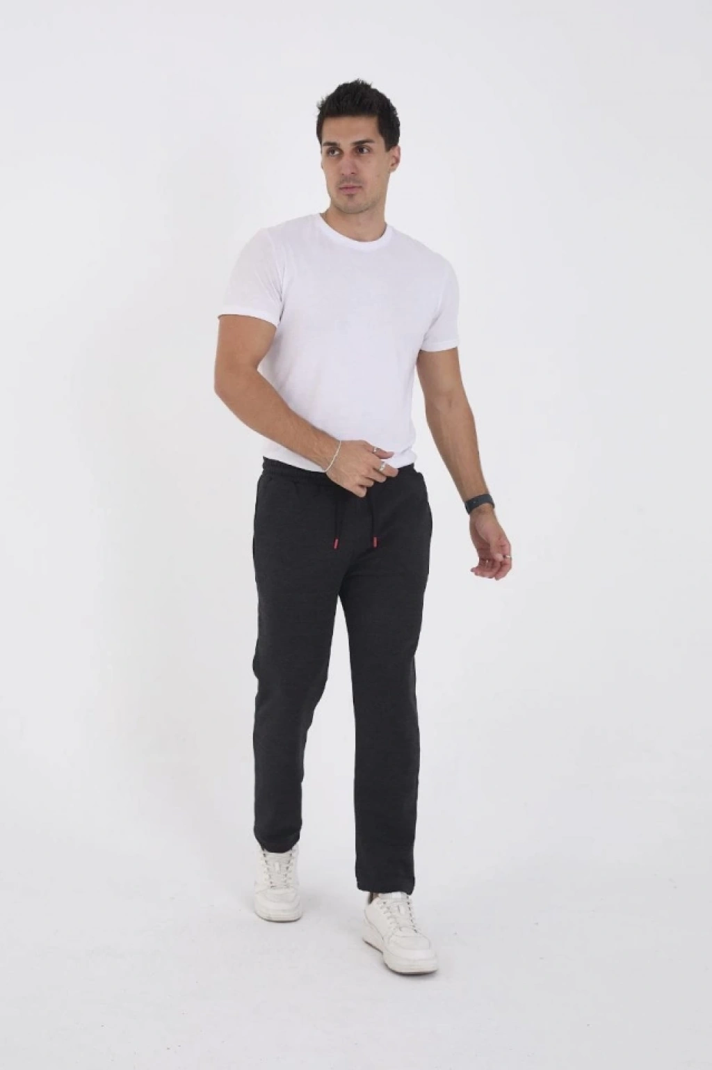 Erkek Üç İplik Basic Eşofman Boru Paça İpli Pantolon Antrasit