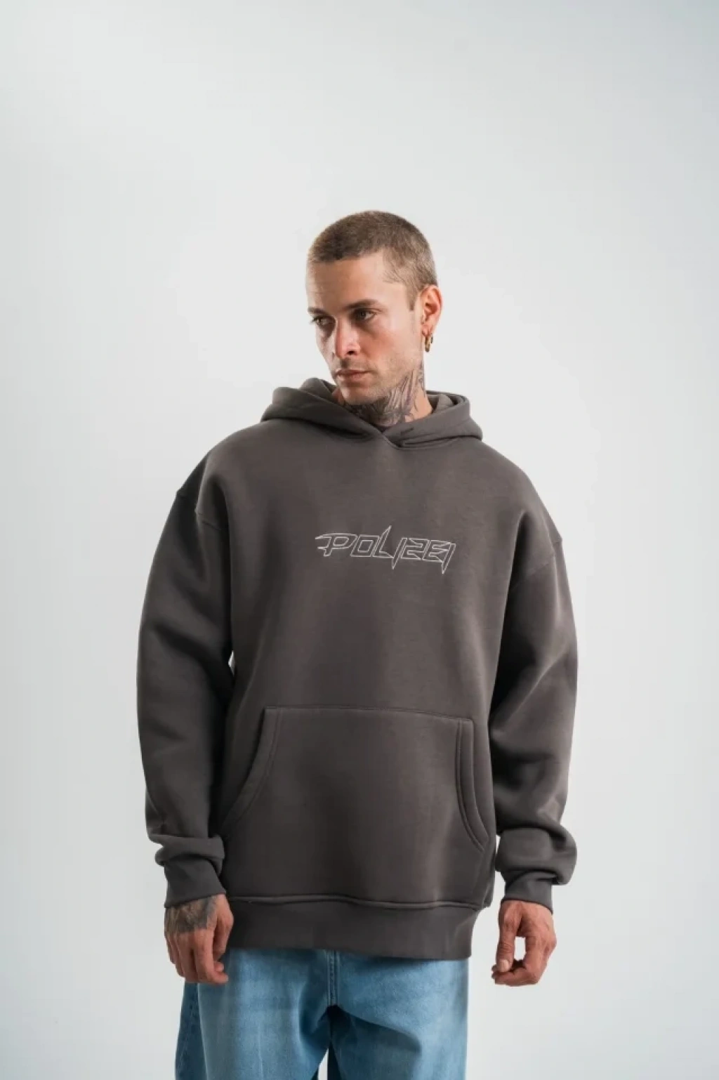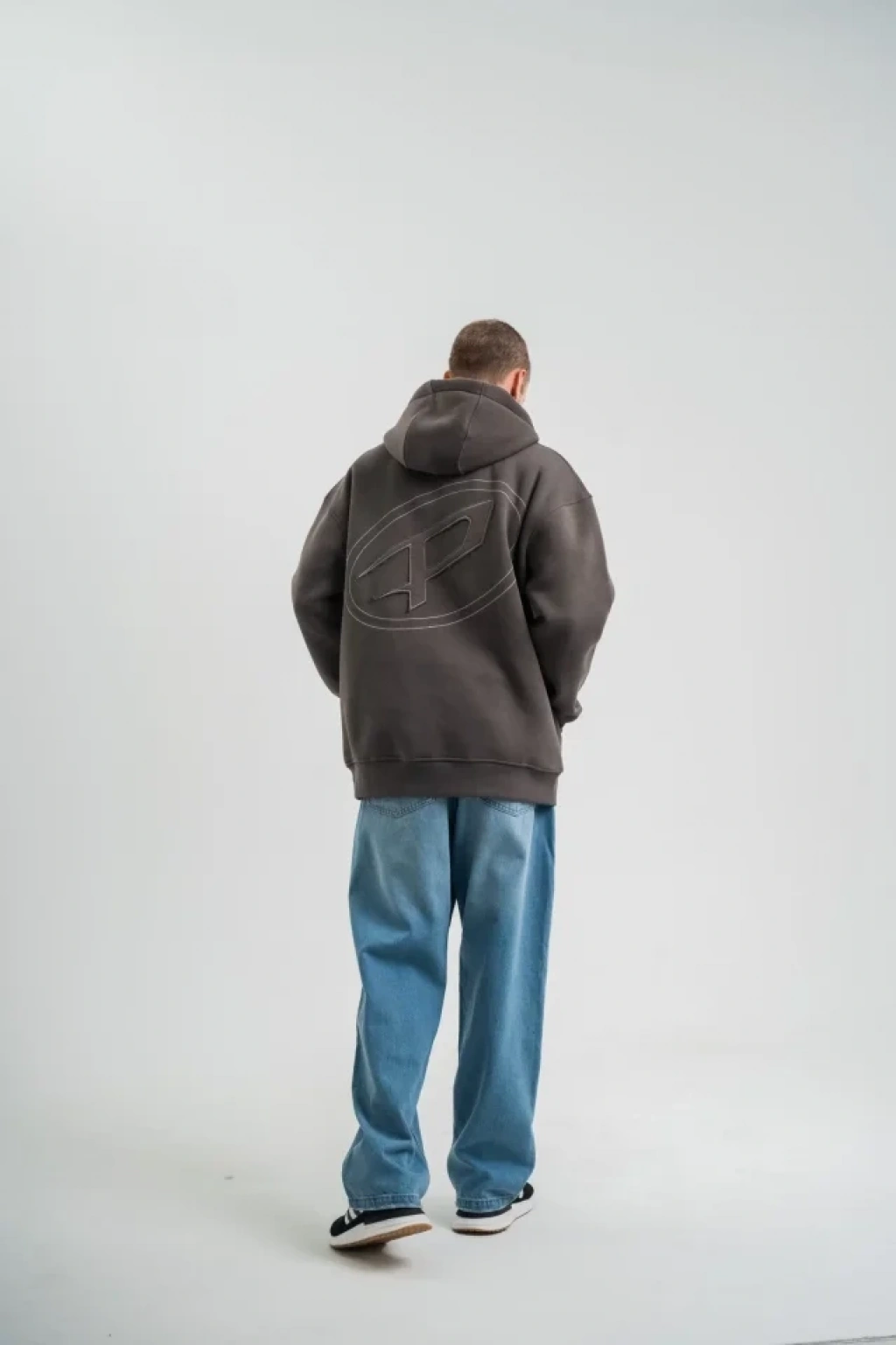 Unisex Üç İplik Kapşonlu Nakışlı weathirt Füme
