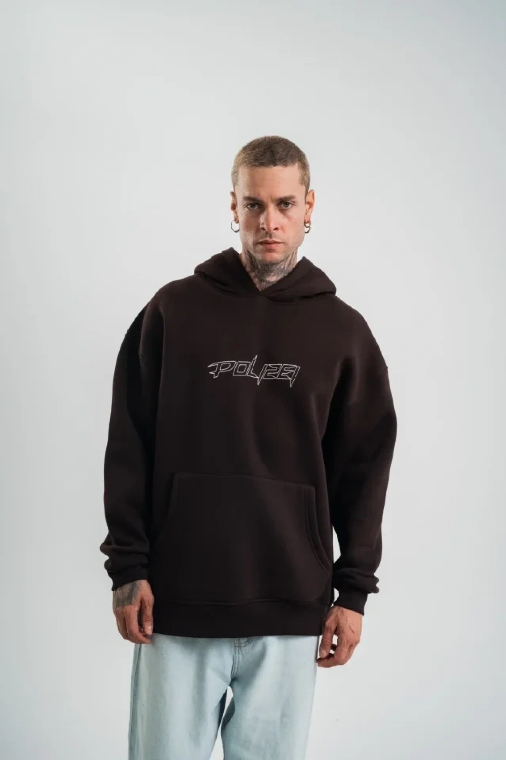 Unisex Üç İplik Kapşonlu Nakışlı weathirt Kahve