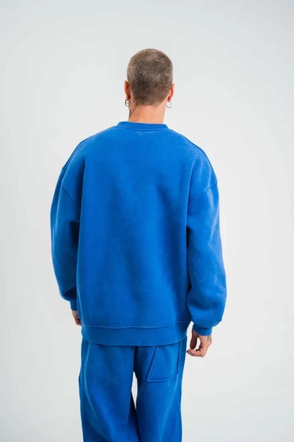Unisex Uzun Kol Bisiklet Yaka Yıkamalı SweatShirt - Mavi
