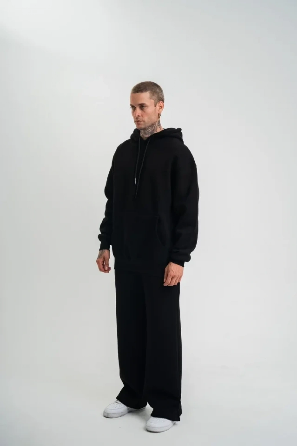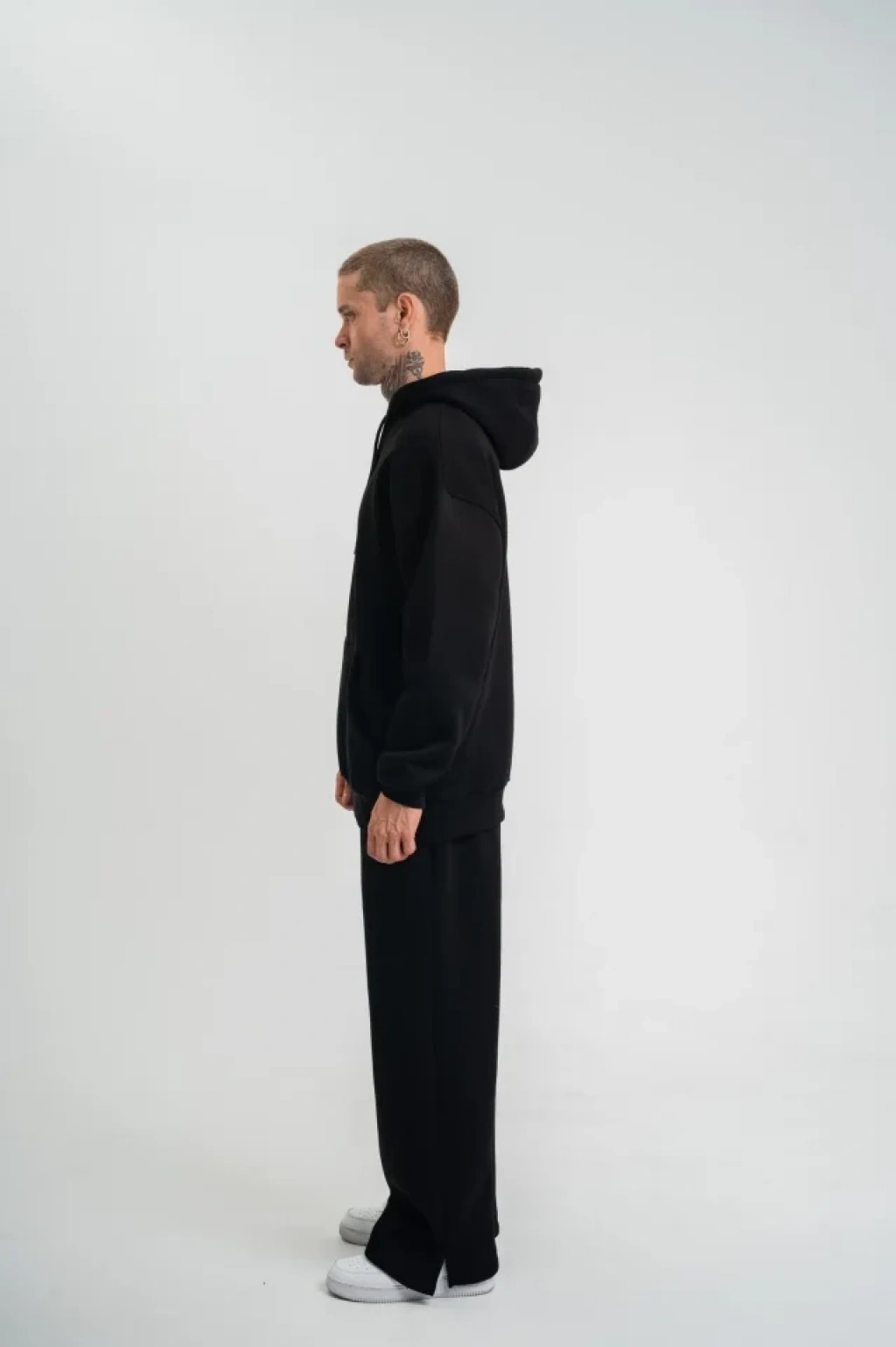 Unisex Uzun Kol Kapşonlu Eşofman Takım - Siyah