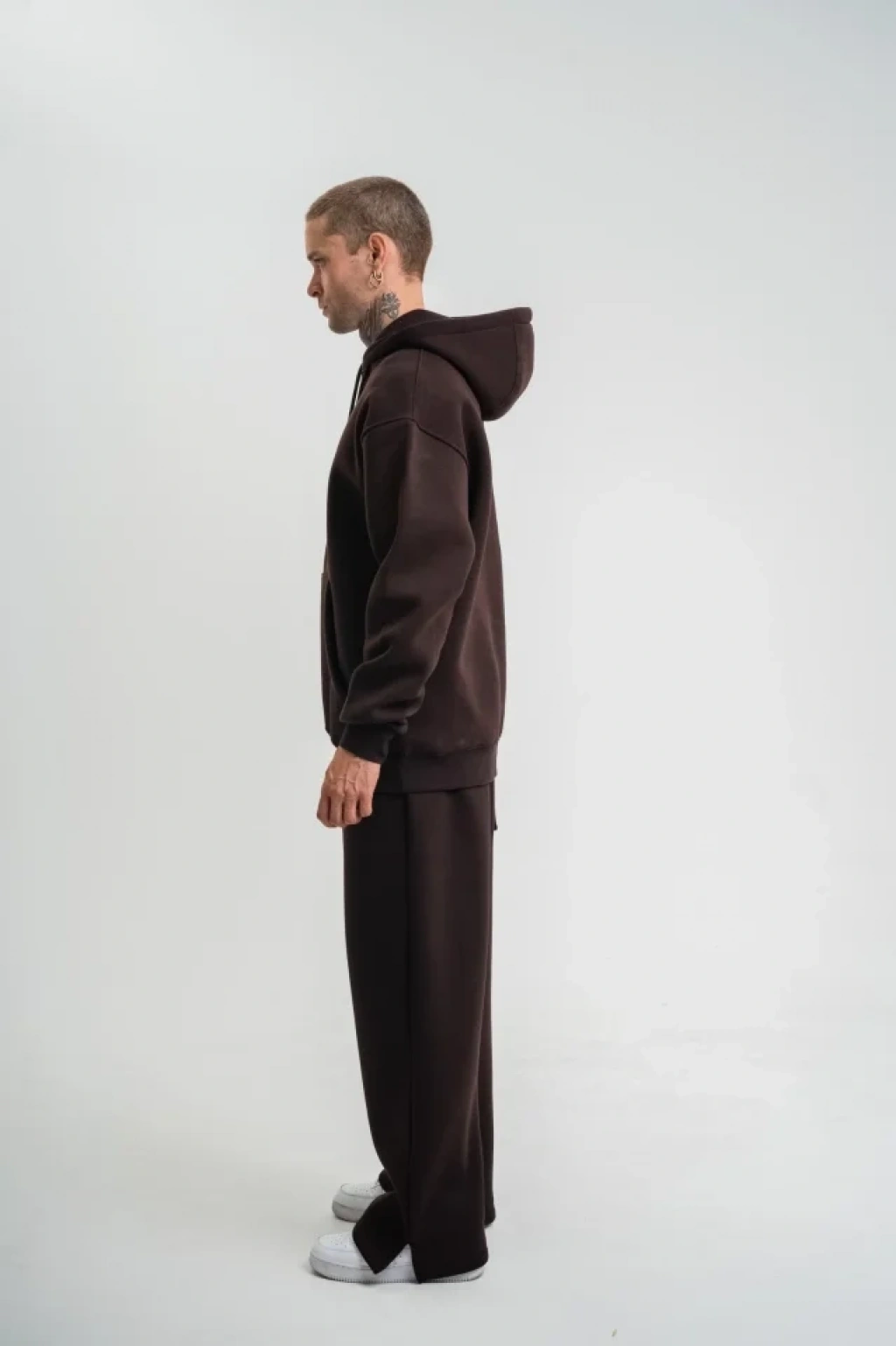 Unisex Uzun Kol Kapşonlu Eşofman Takım Kahve