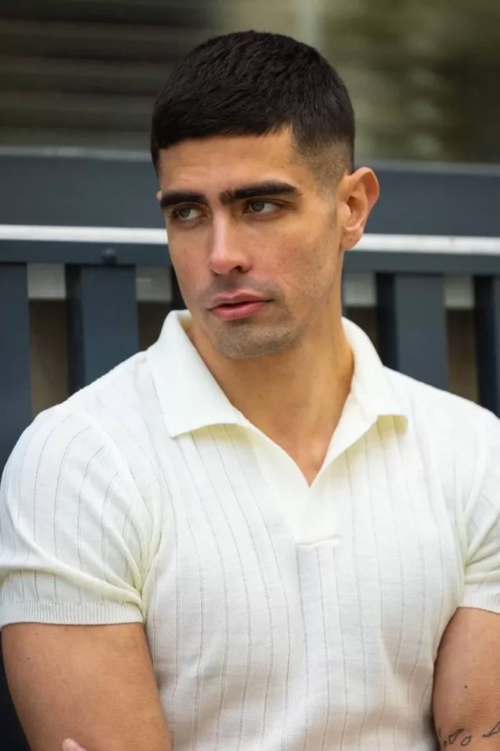 Unisex Yakalı Triko T-Shirt - Beyaz