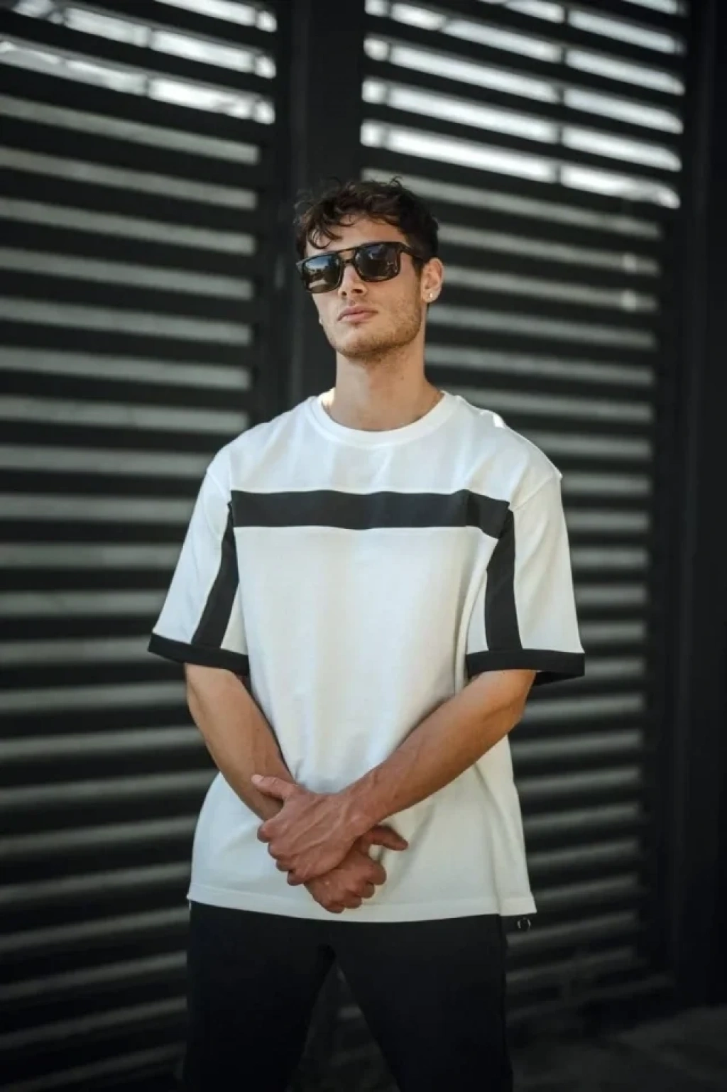 Unisex Yandan Fermuarlı Parçalı T-Shirt - Beyaz