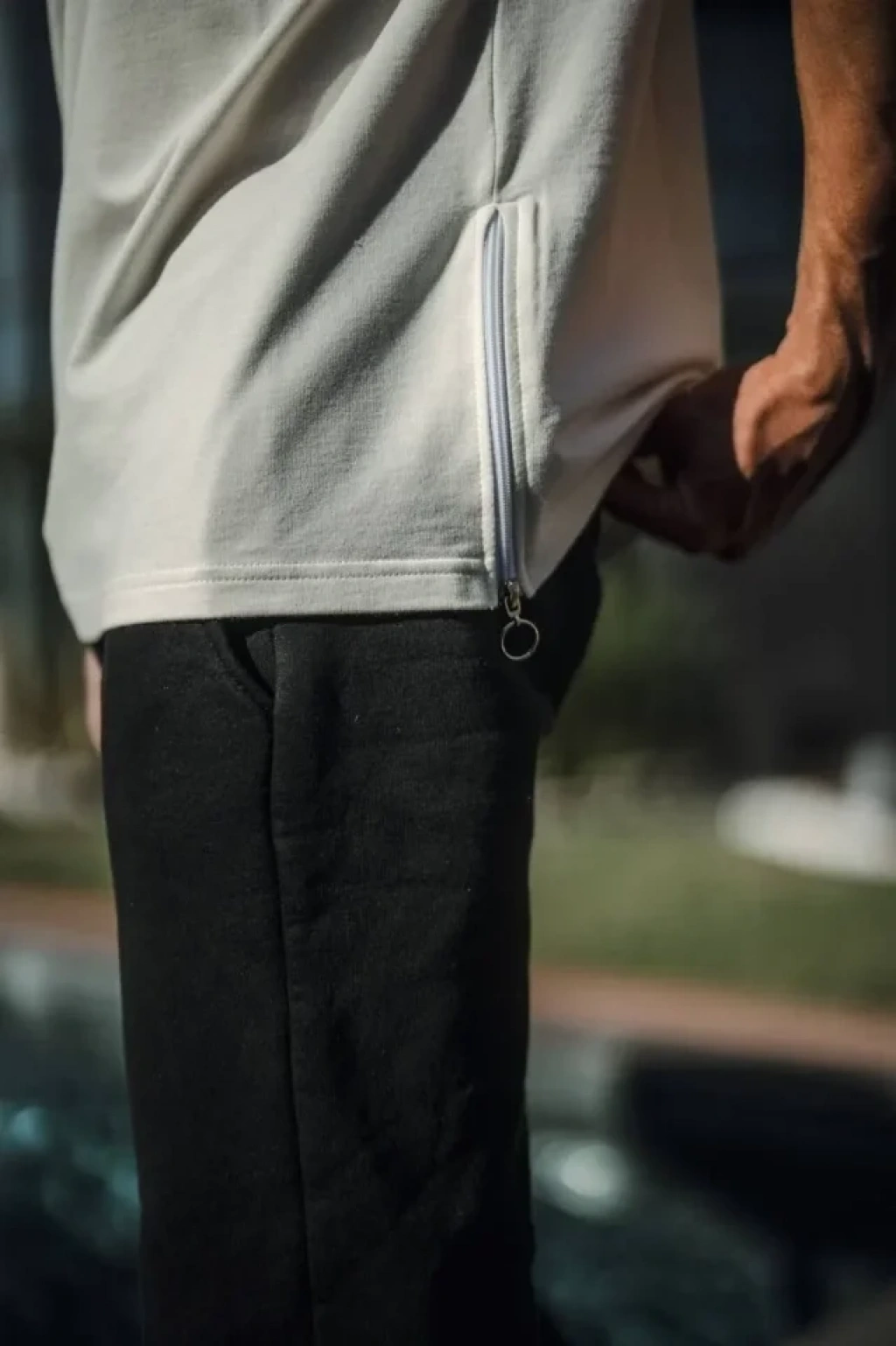 Unisex Yandan Fermuarlı Parçalı Thirt Beyaz