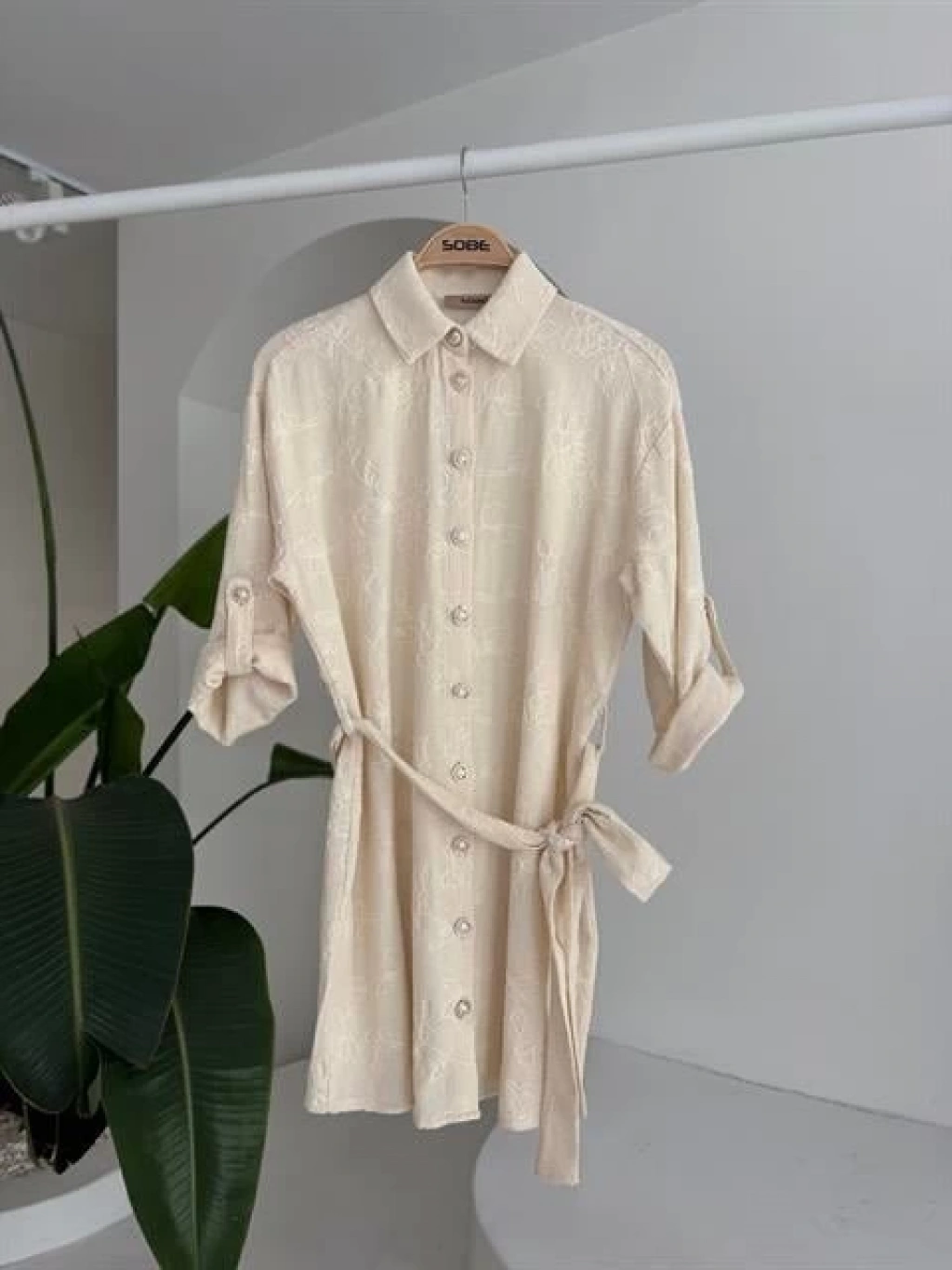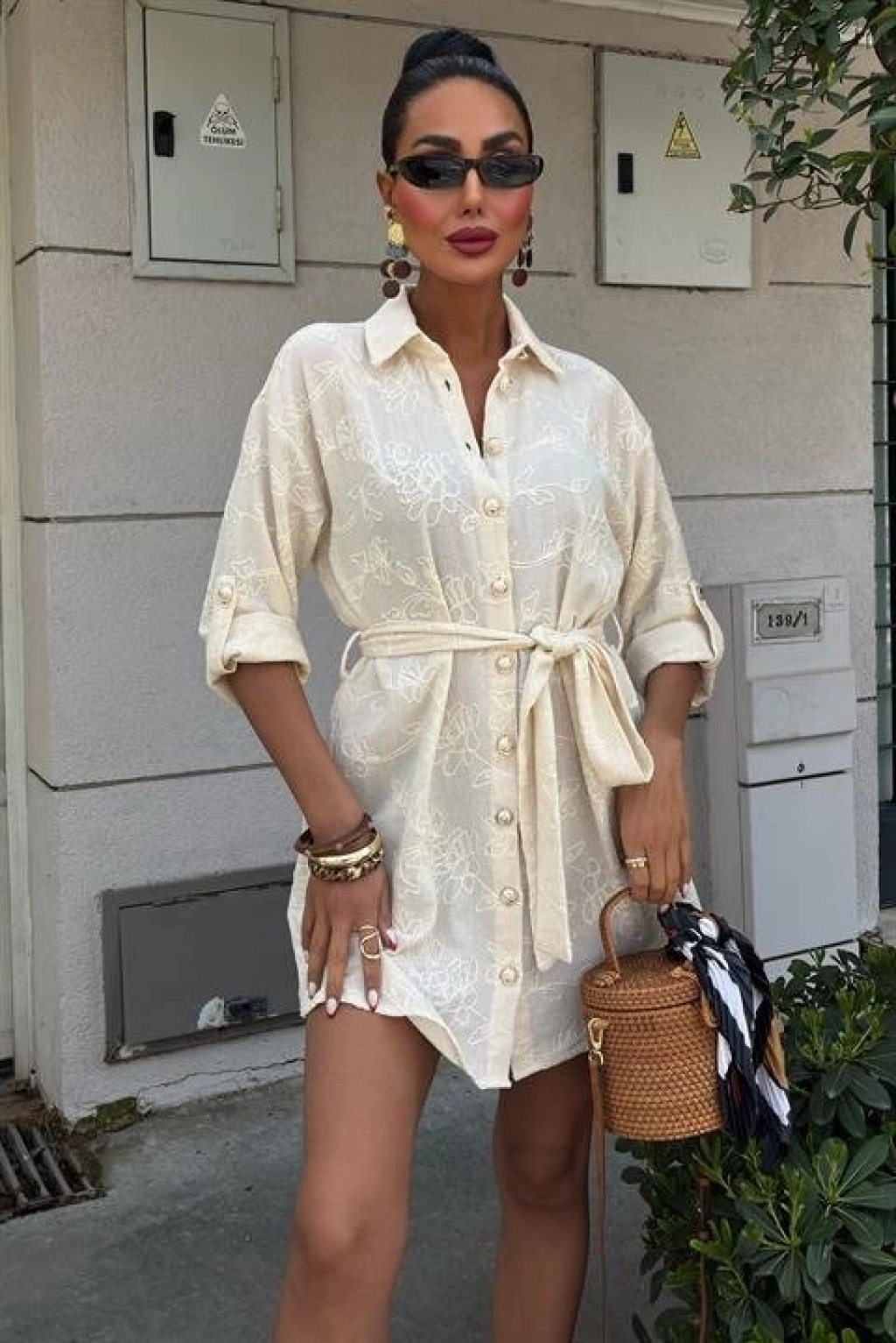 Süzene Nakışlı Ve Gold Düğmeli Elbise 2742