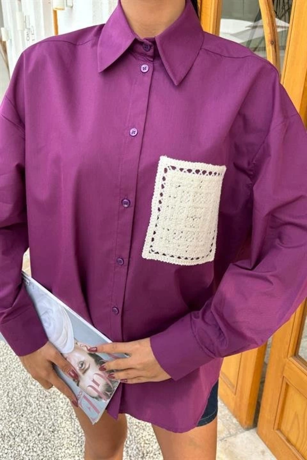 üzine Cepli Arkası Yırtmaçlı Oversize Gömlek 3420