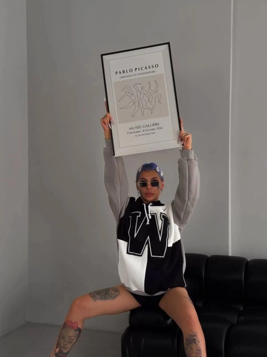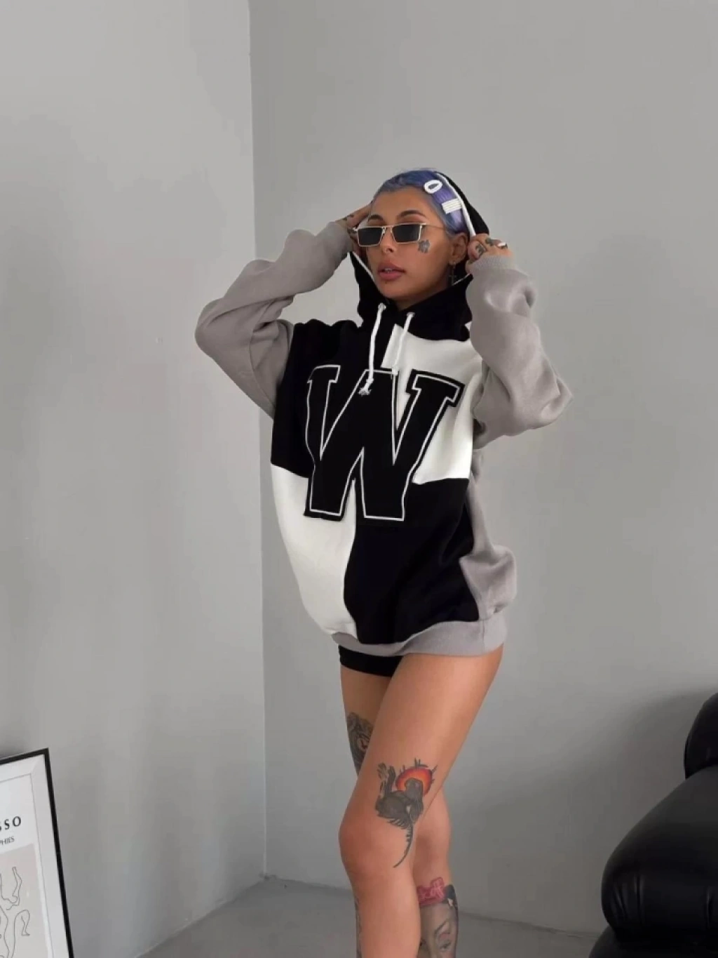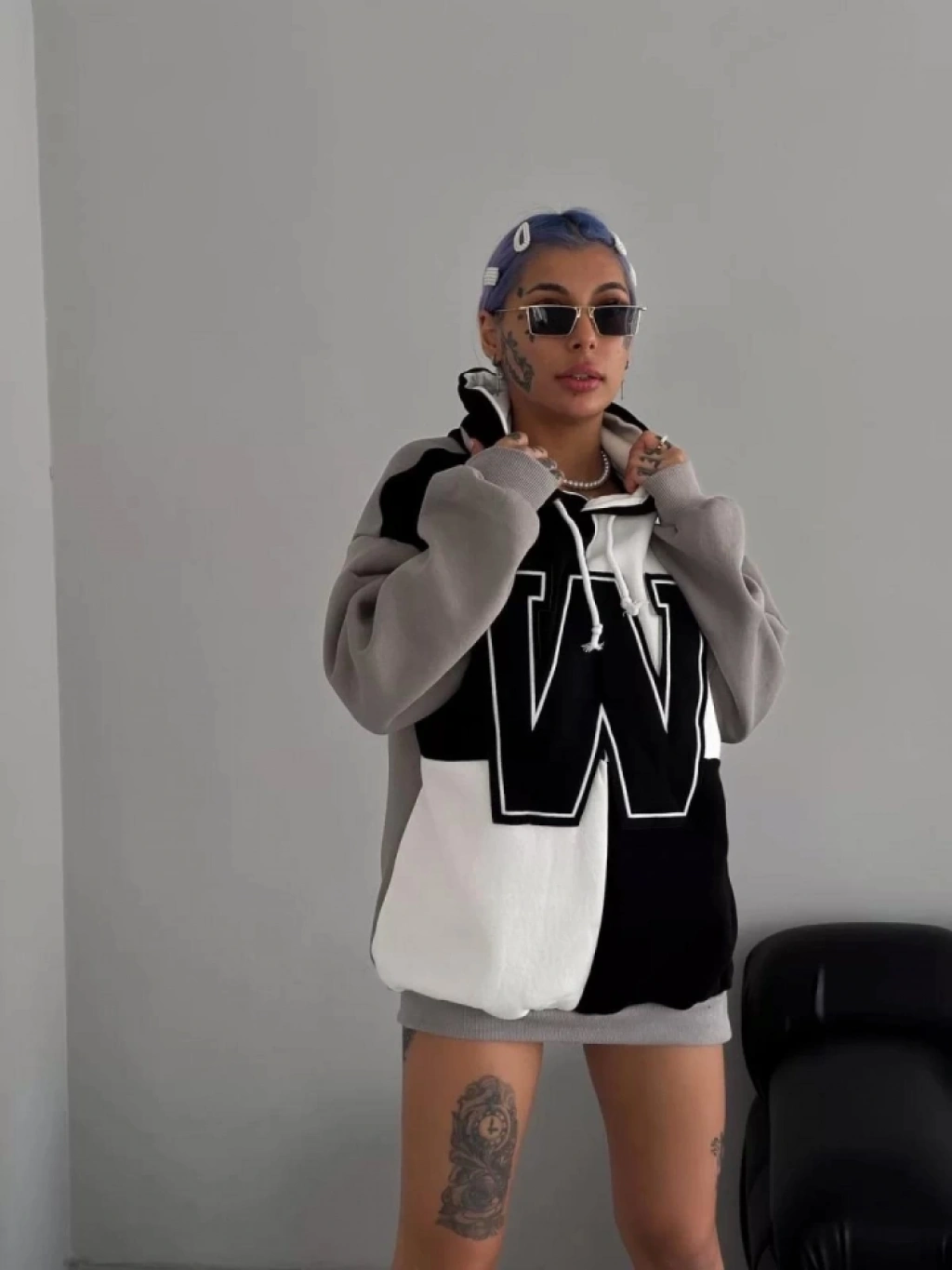 W Nakış İşlemeli Kapüşonlu Sweatshirt - Siyah