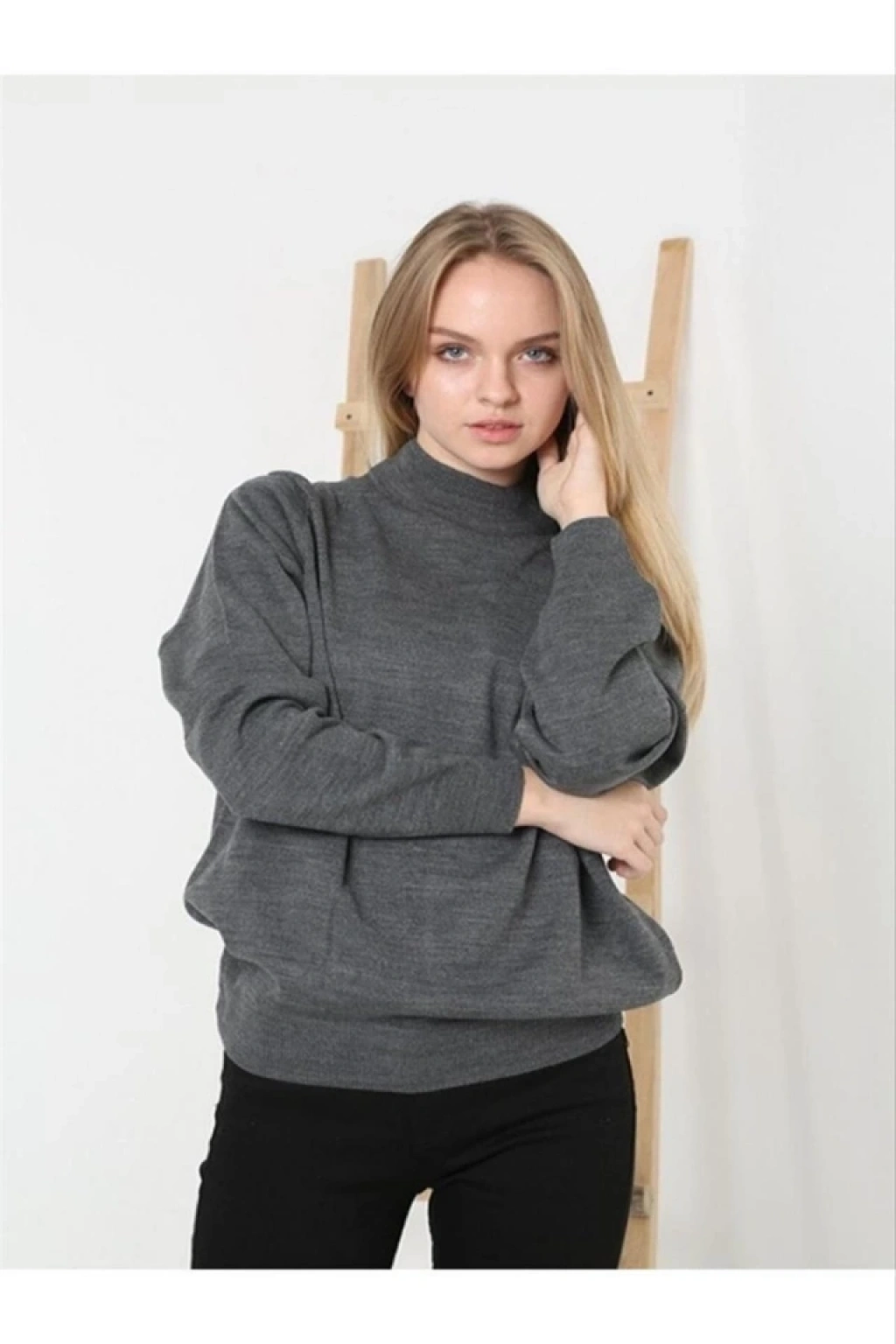 Yarım Balıkçı Yaka Triko Kazak - Füme