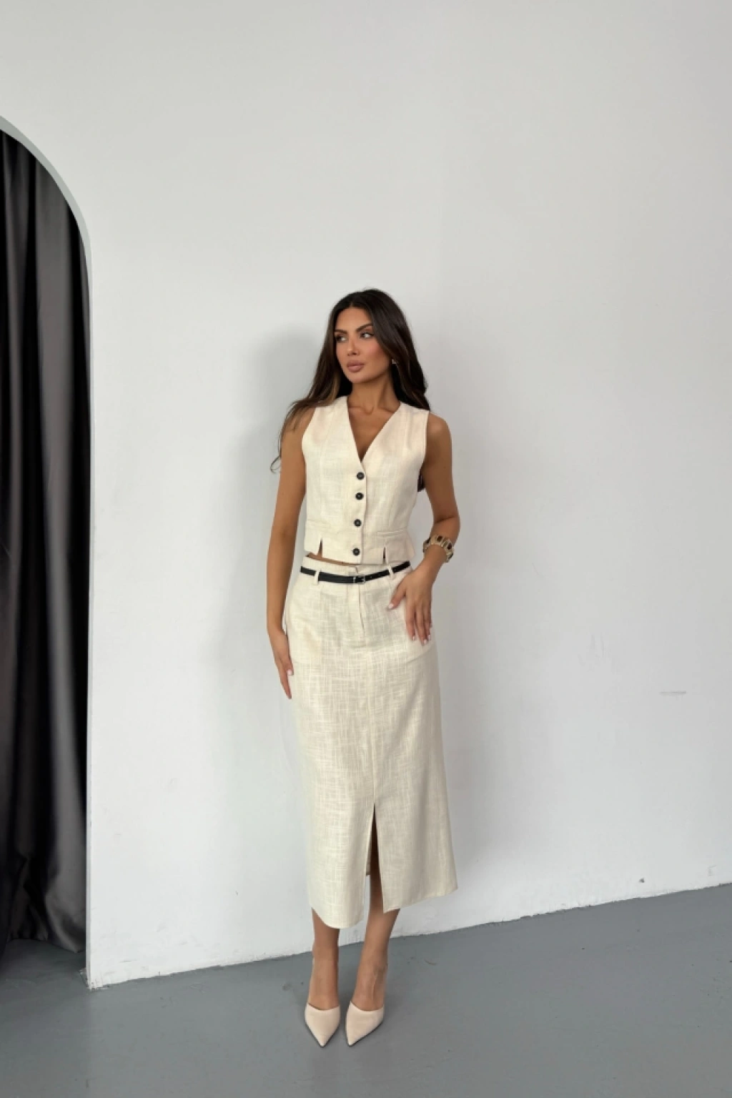 YELEK-ÖNDEN YIRTMAÇLI ETEK TK ŞANTUK KETEN - Ham