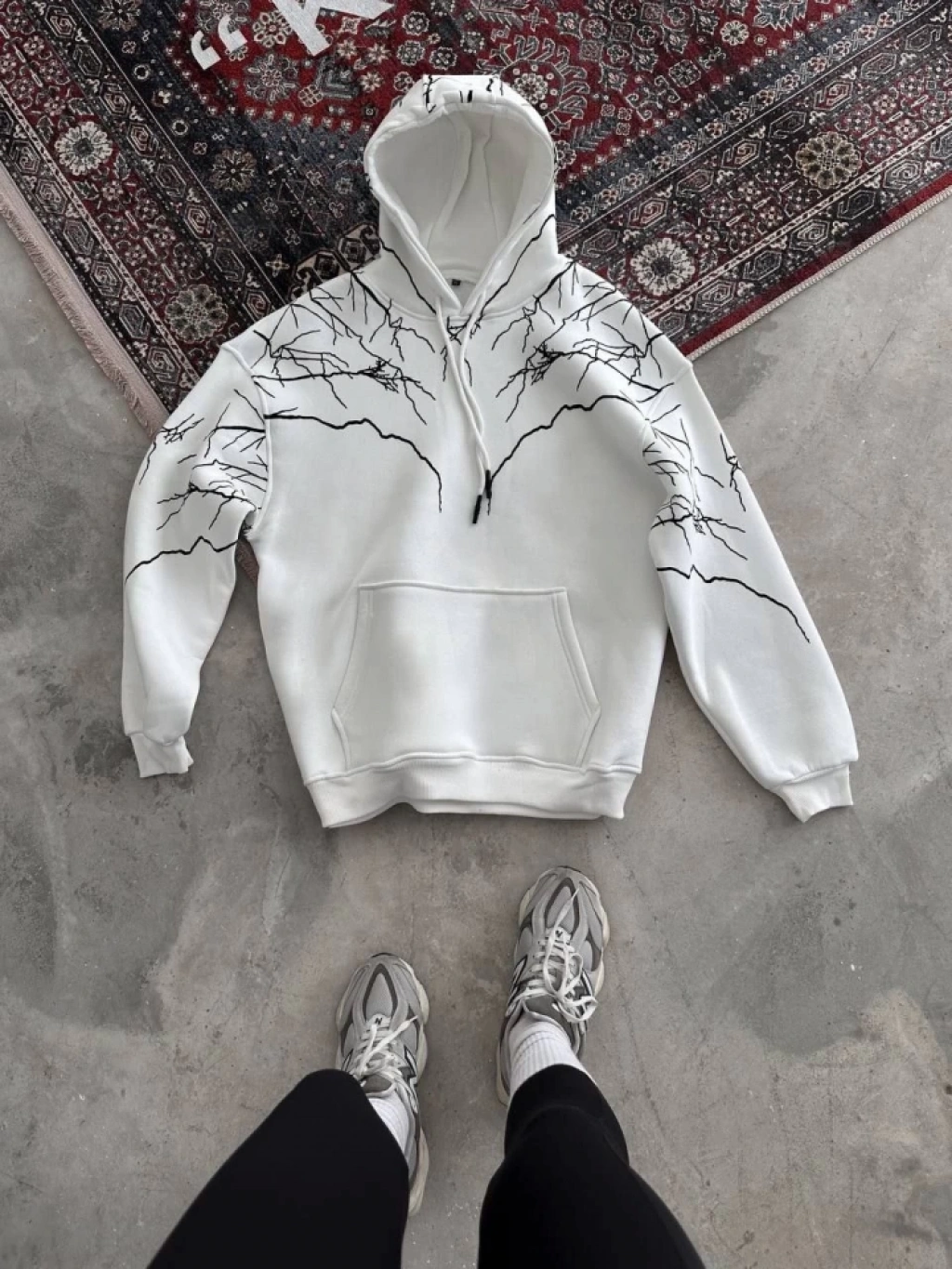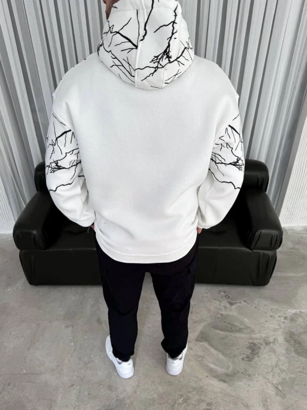 Yıldırım Baskılı Kapşonlu weathirt Beyaz