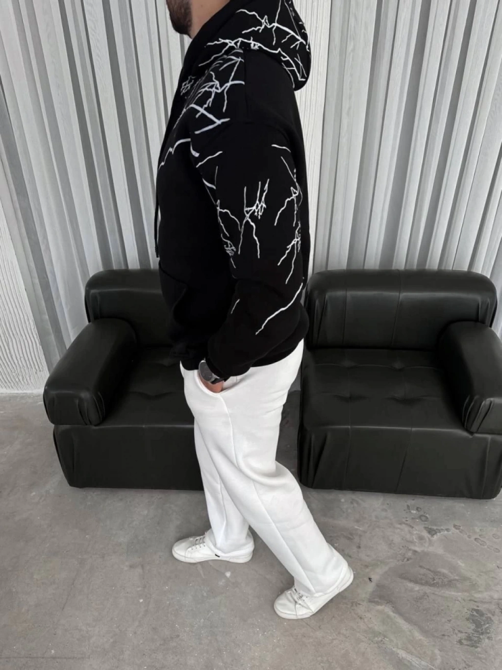 Yıldırım Baskılı Kapşonlu weathirt iyah