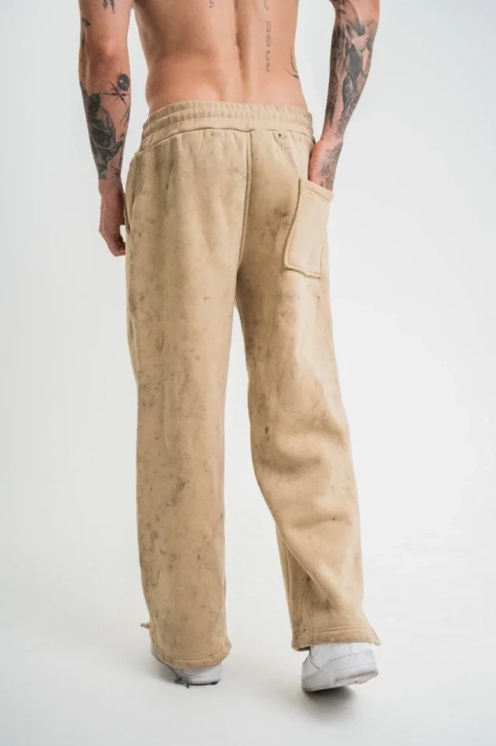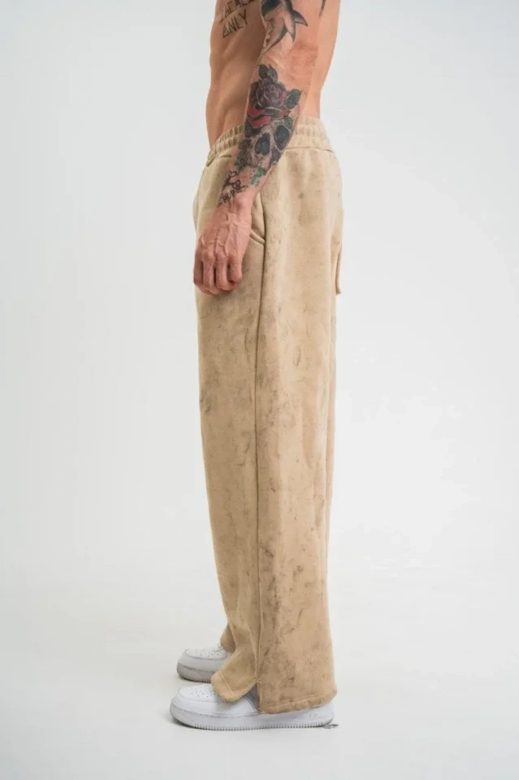 Yırtmaç Detaylı Boru Paça Baggy Eşofman Pantolon - Bej