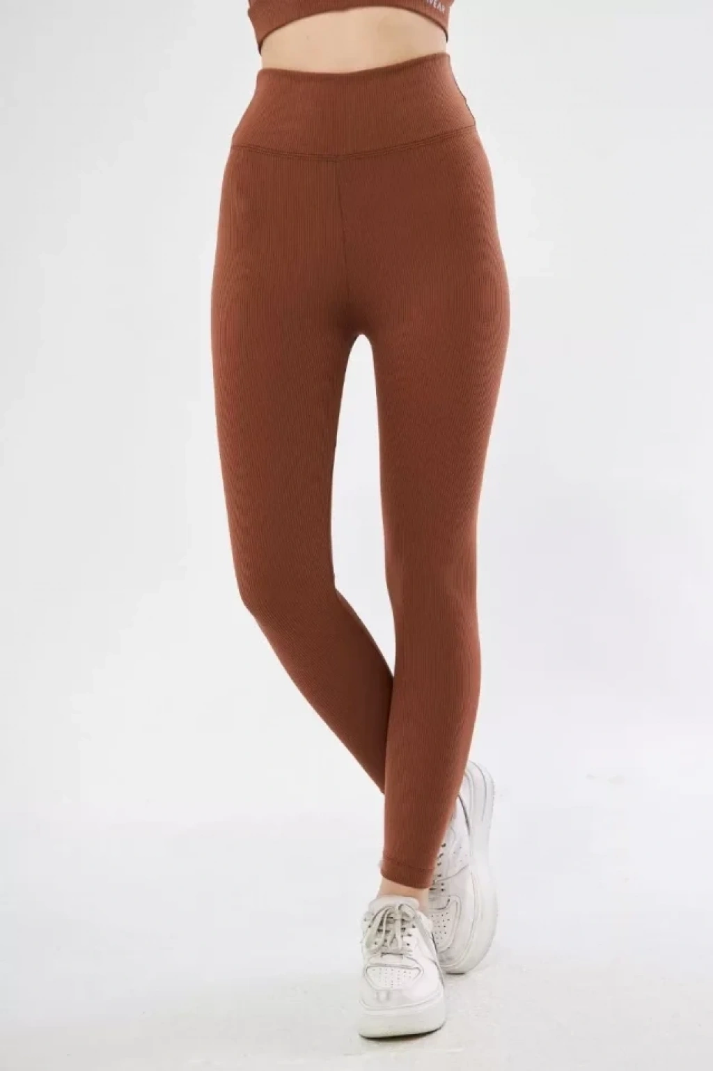 Yüksek Bel Fitilli Battal Tayt - Kahve
