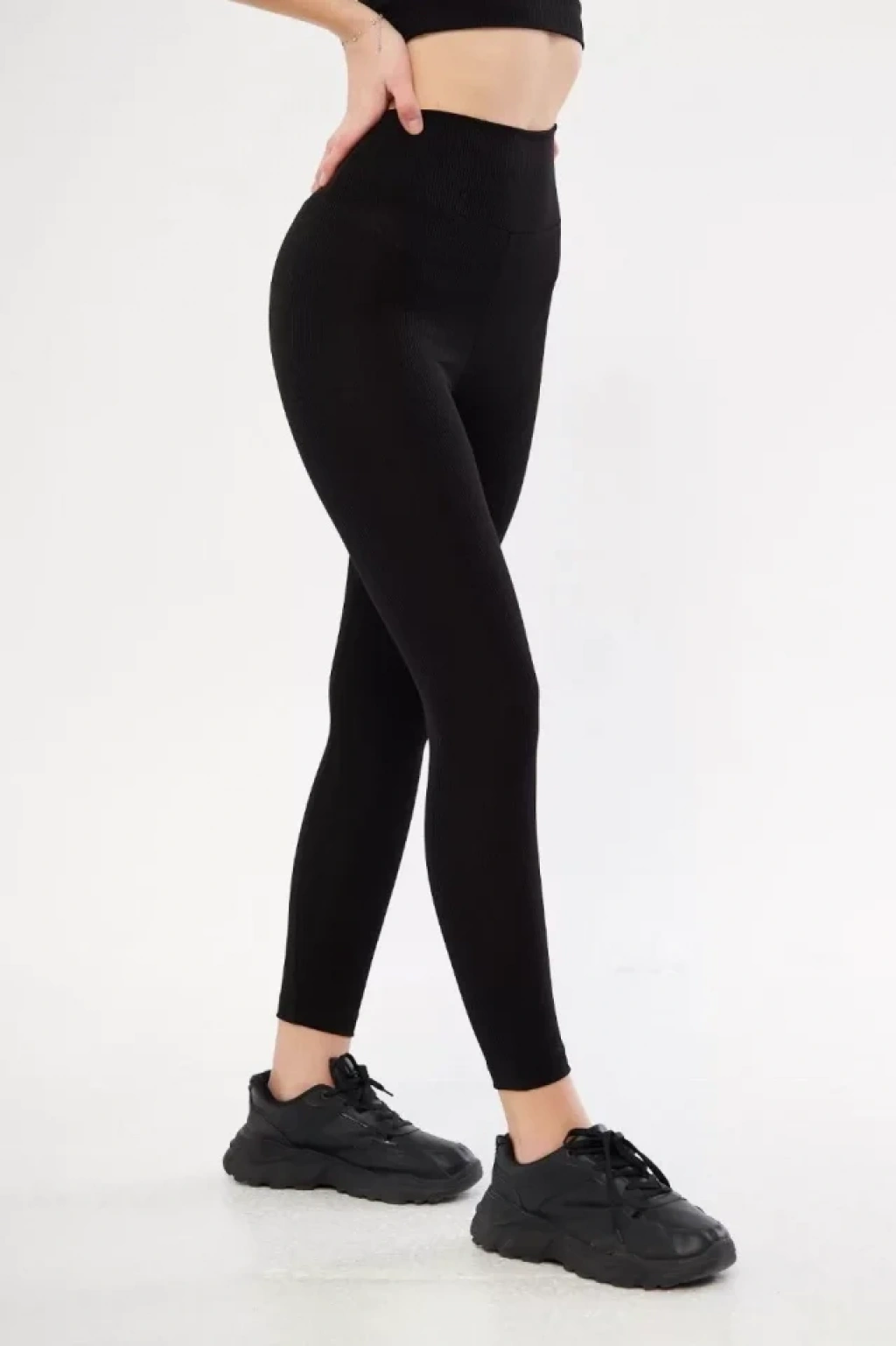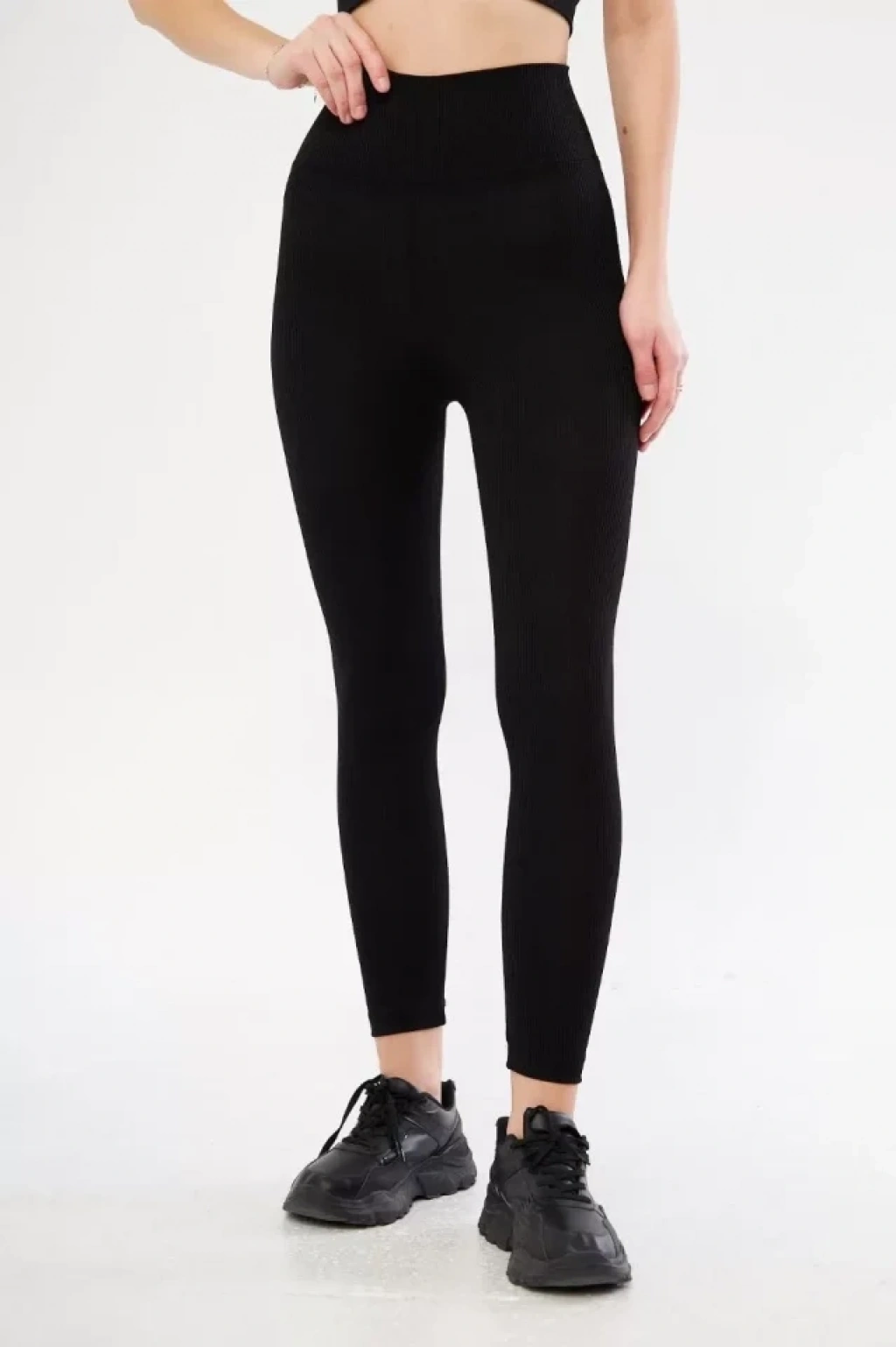 Yüksek Bel Fitilli Tayt - Siyah