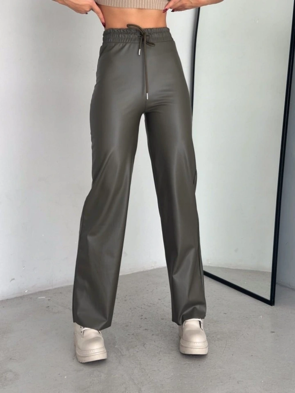 Yüksek Bel Geniş Paça Içi şardonlu Deri Pantolon.