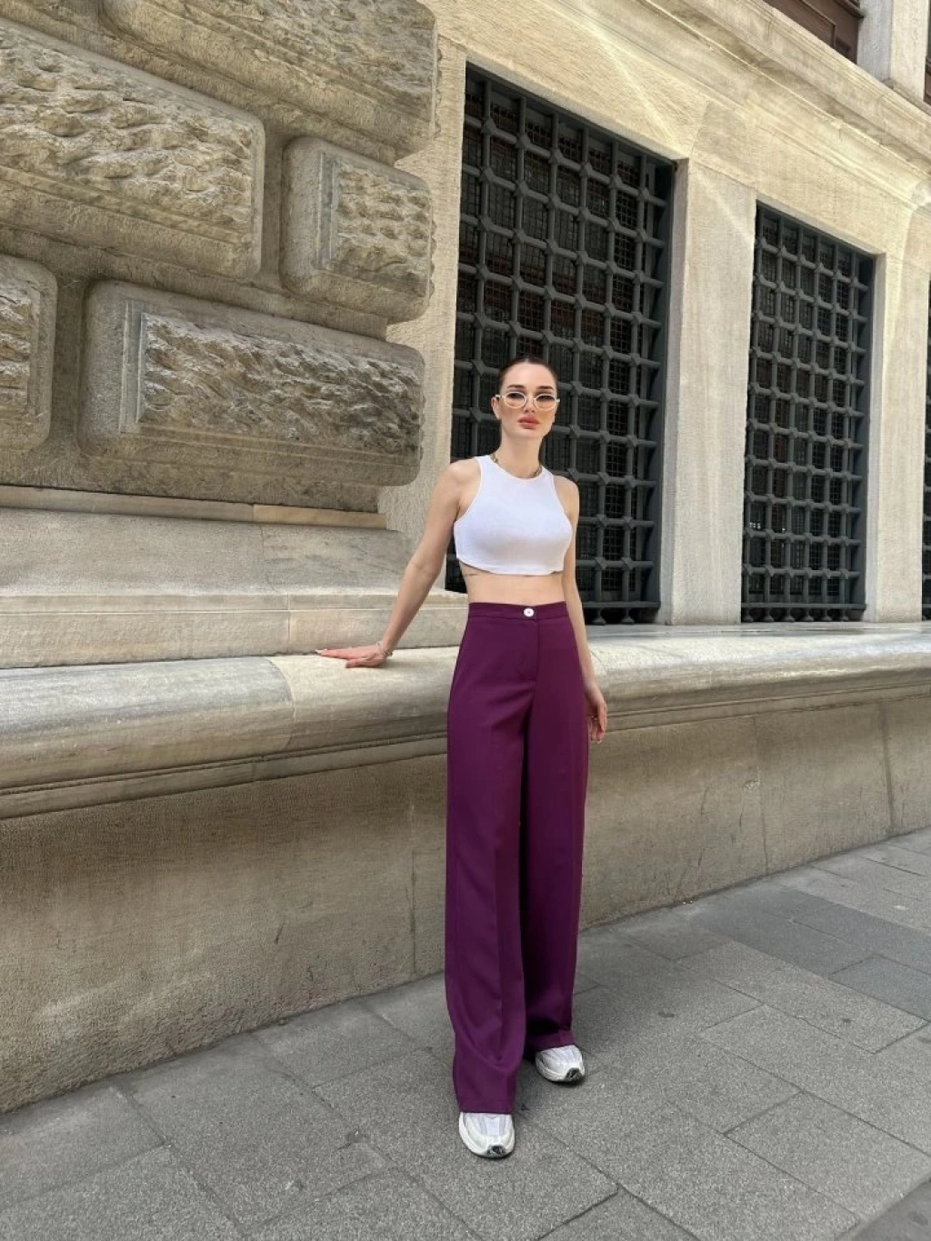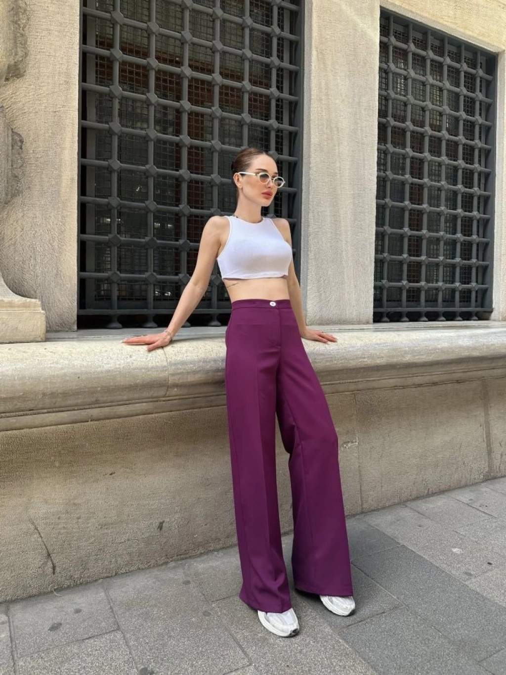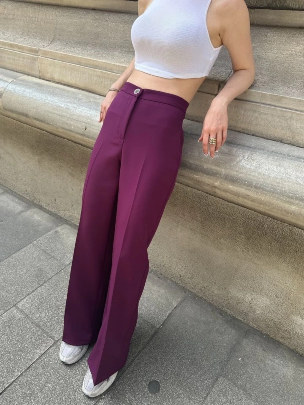 Yüksek Bel Palazzo Metal DüğmePantolon