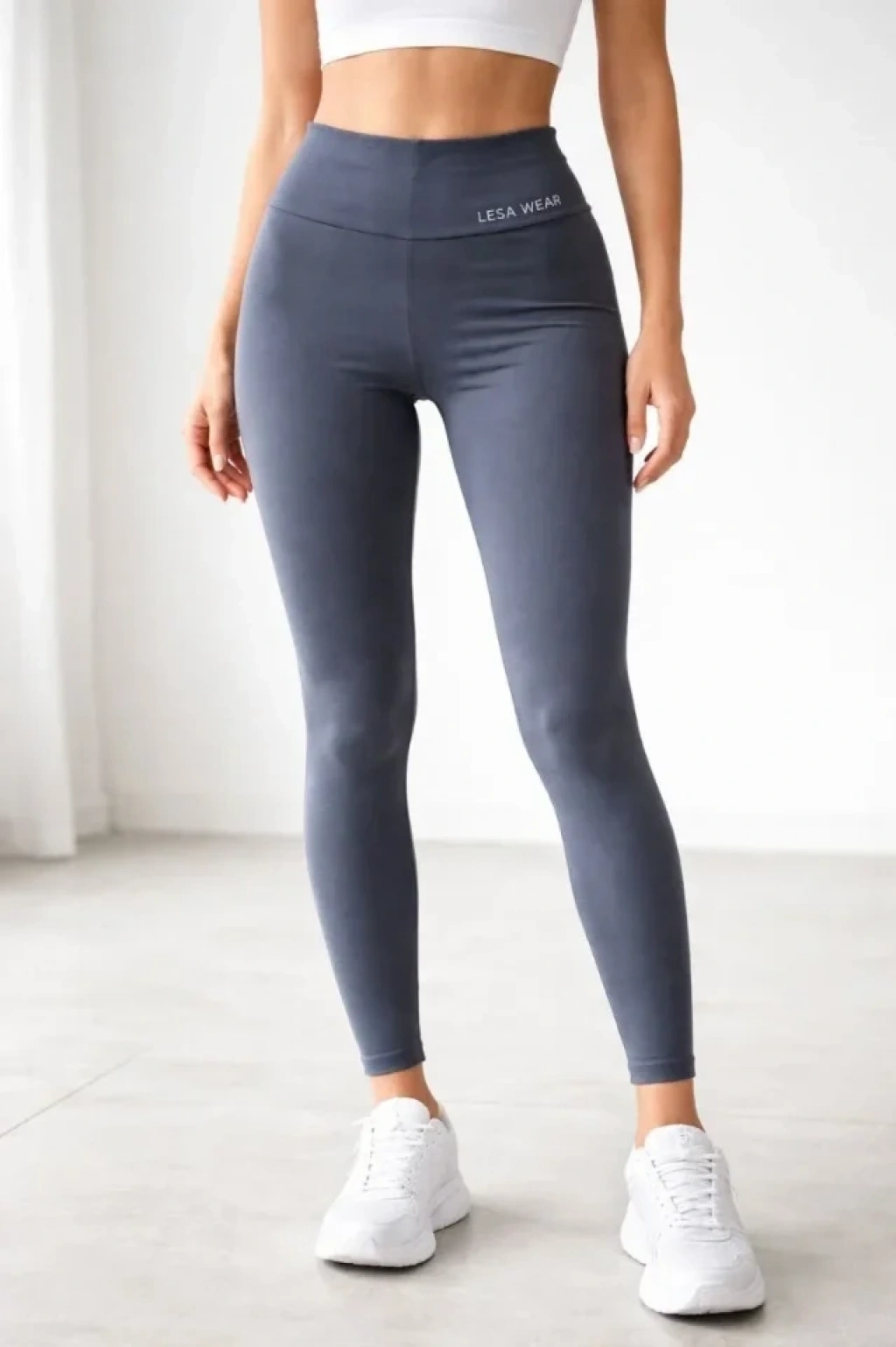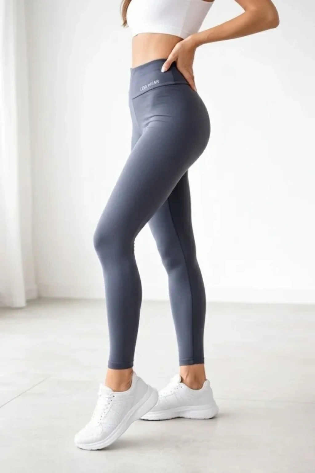 Yüksek Bel Toparlayıcı Likralı Dalgıç Spor Tayt Esnek Rahat Kalıp - Füme