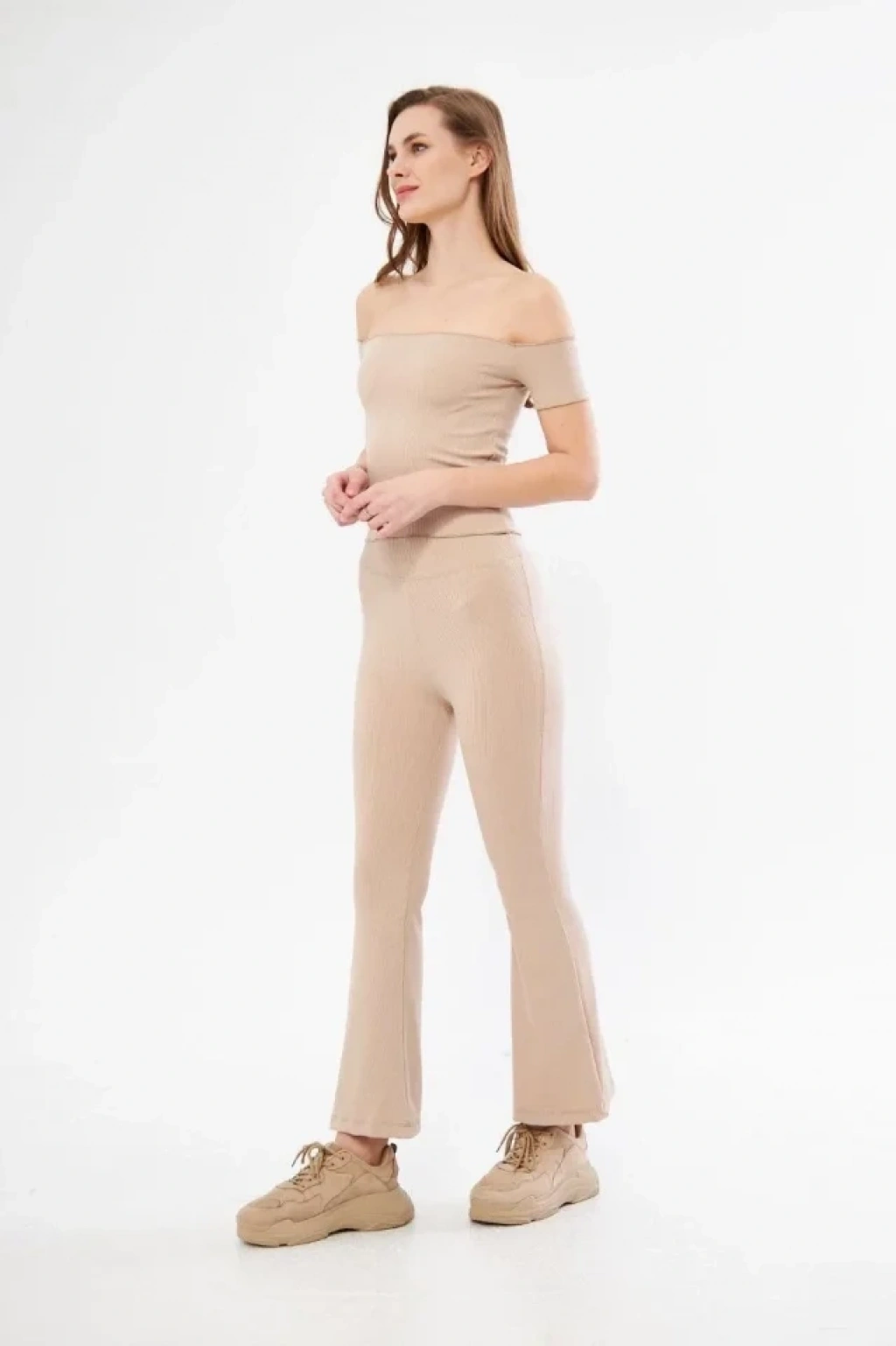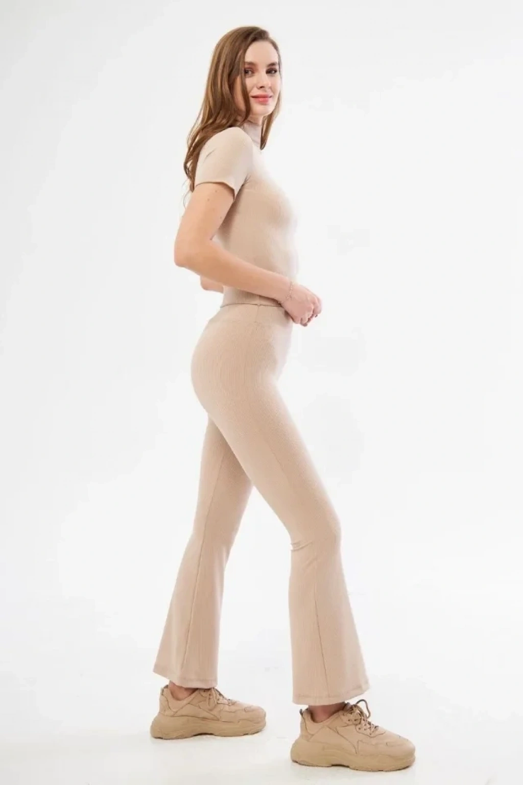 Yüksel Bel Fitilli İspanyol Paça Tayt - Bordo